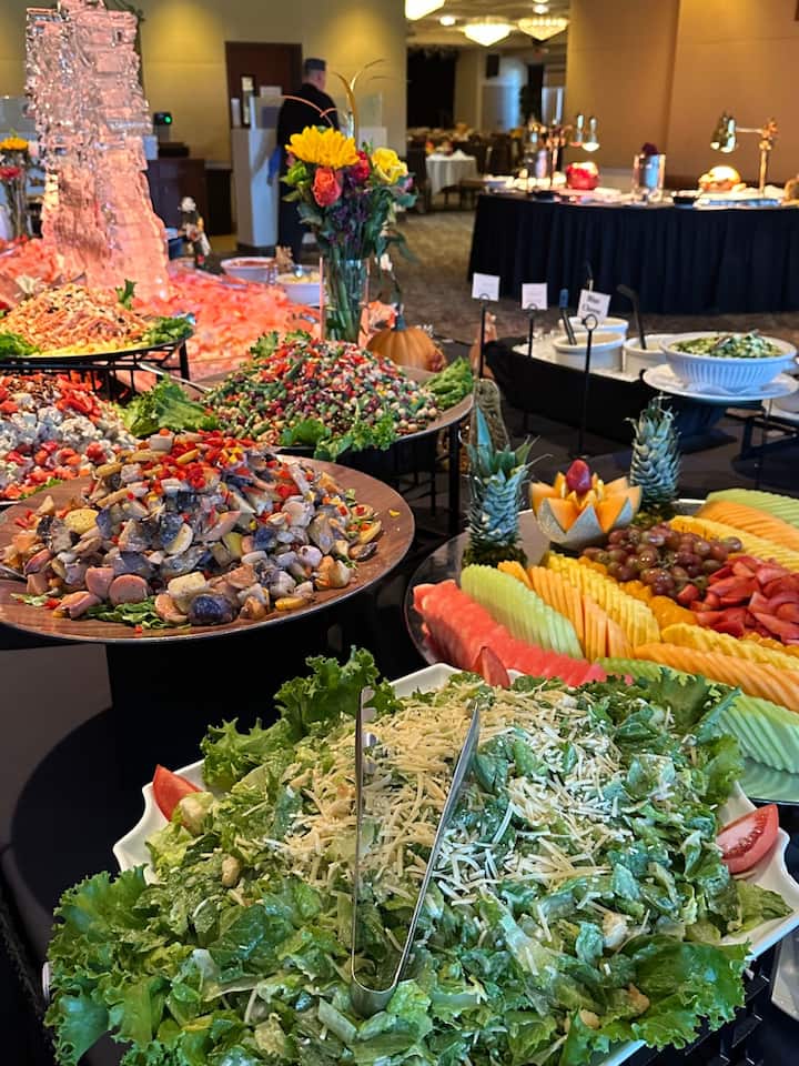 Genieße ein komplettes Taco-Bar-Erlebnis mit Chips, Salsa, Guacamole, einem frischen Fiesta-Salat und einer Vielzahl von Tacos, darunter Carne Asada, Pollo Asado und Veggie. Ergänze deine Mahlzeit mit mexikanischem Reis, gebratenen Bohnen und allen klassischen Salsas, abgerundet mit einem köstlichen Tres-Leches-Kuchen.