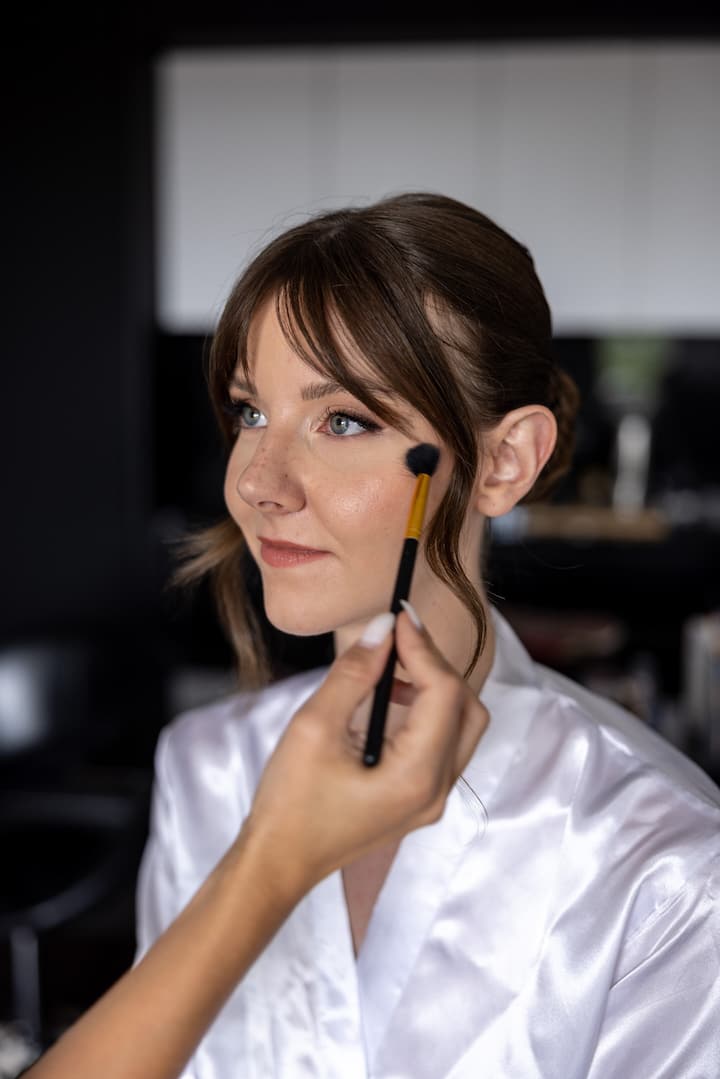 Diese Leistung umfasst die Hautpflege, ein komplettes Tages-Make-up (leichte Augenarbeit) sowie ein Finishing-Spray.