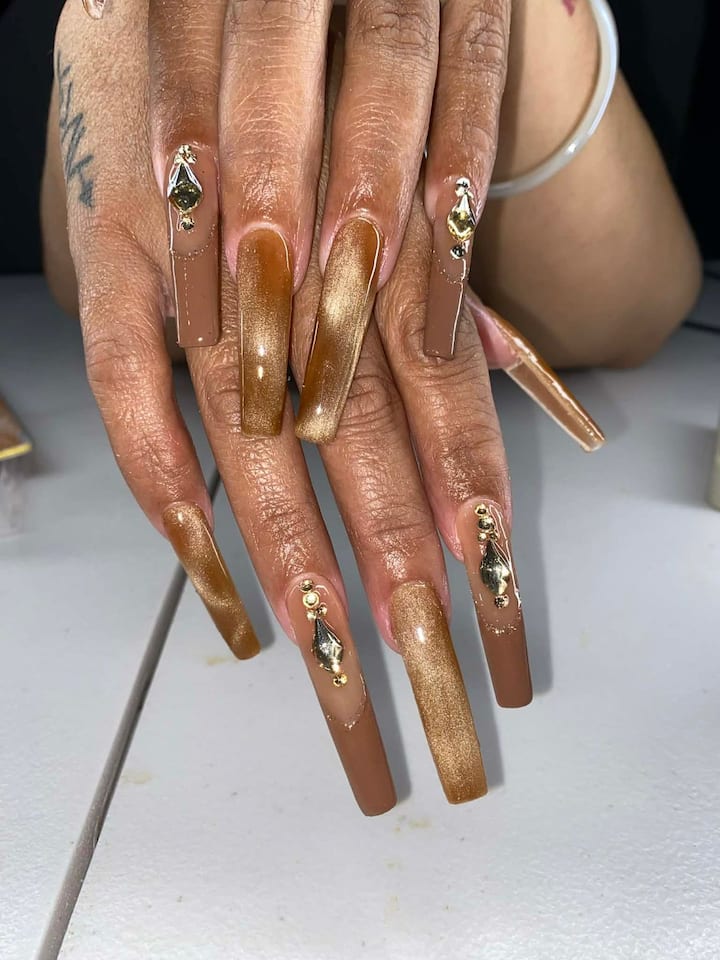 Ich habe über 15 Jahre lang bei Kandy Nailz gearbeitet und mich auf das Auftragen von Nagellack und Nagelkunst spezialisiert.