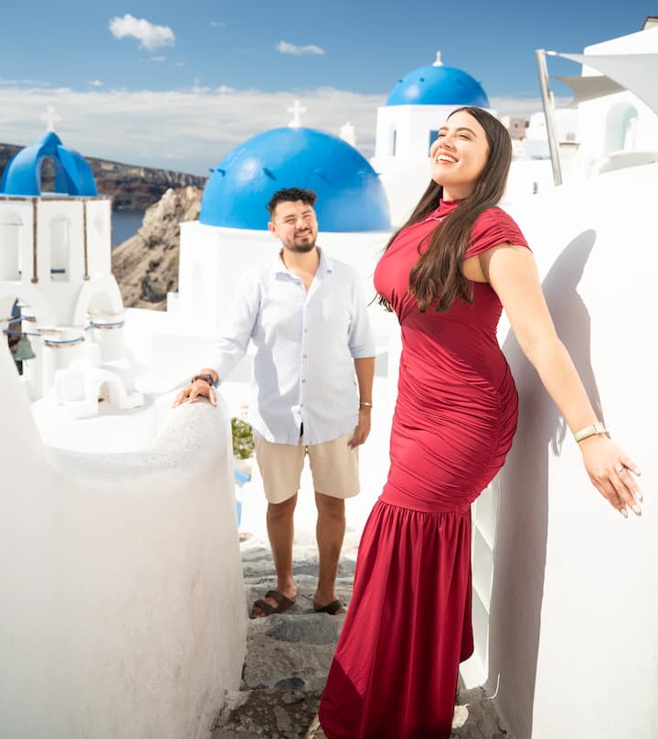 Dieses Erlebnis bietet ein romantisches Fotoshooting in Oia, beginnend mit den berühmtesten und malerischsten Orten.