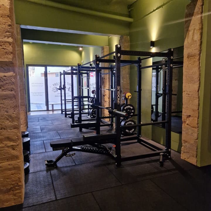 Lerne, wie du Gewichte stemmst, verbessere deine Technik oder finde Verantwortlichkeit, um für dich selbst da zu sein und dein Bestes zu geben. Anfänger willkommen. Wir werden in deinem Tempo bewegen. Ruhiges, privates Fitnessstudio im Zentrum von Palma. Tiefgarage in der Nähe. Übungen, die auf dich zugeschnitten sind.