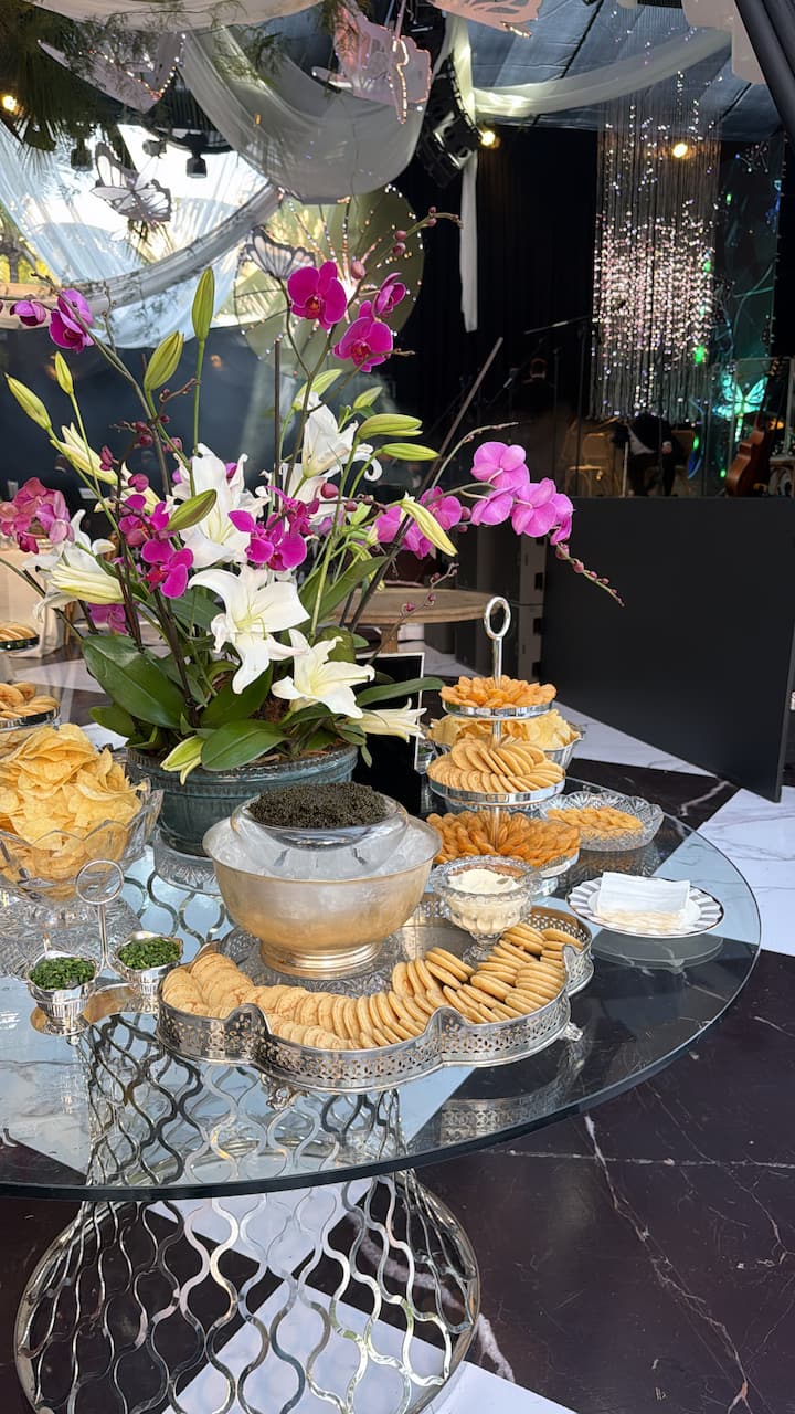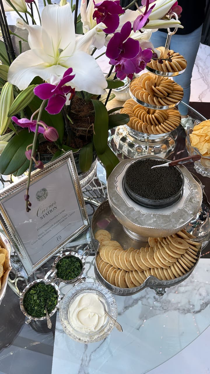 Eine gehobene Kaviarbar, die jedem Anlass einen Hauch von Luxus verleiht. Mit einem wunderschön gestalteten Display, einem erstklassigen Kaviar-Service, traditionellen Beilagen und eleganten Präsentationselementen schafft dieses Erlebnis einen raffinierten und unvergesslichen Mittelpunkt für deine Veranstaltung.