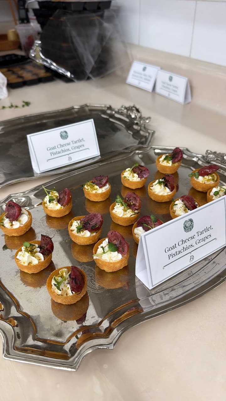 Ein kunstvoll zusammengestellter Canapé-Service mit kreativen, vom Küchenchef inspirierten Häppchen, die frische Zutaten und moderne Aromen in den Mittelpunkt stellen. Ideal für ein schickes, interaktives kulinarisches Erlebnis ohne die Förmlichkeit einer Mahlzeit am Tisch.