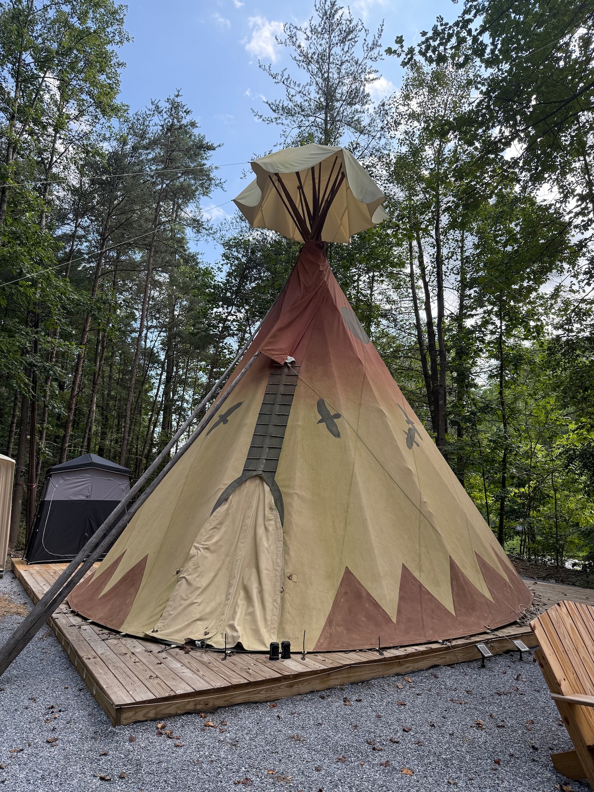 Die achtjährigen Superhosts des Blue Tipi bieten dir ein neues Erlebnis auf Airbnb! Destination Unknown ist ein wunderschönes Glamping-Erlebnis in einem rustikalen Zelt im Expeditionsstil mit herrlichem Blick auf die Blue Ridge Mountains, Sterne und mehr! Wir suchen abenteuerlustige Reisende, um uns bei diesem unvergesslichen Rückzugsort in den Bergen wieder mit der Natur zu verbinden. Es braucht Vertrauen, um unsichtbar zu buchen, du kannst sicher sein, dass du alles hast, was du brauchst, und mehr für den perfekten Aufenthalt. Entspann dich und lass dich wieder verbinden!