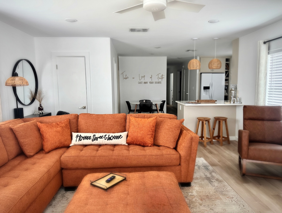 Dies ist ein perfekter Ort für eine Übernachtung oder einen Kurztrip. Der Grund dafür ist, dass es keine Küche gibt, nur einen kleinen Kühlschrank und eine Mikrowelle. Der Luftzug zwischen der Gästesuite und dem Haupthaus wird mit den Eigentümern geteilt, aber du hast absolute Privatsphäre in der Gästesuite, die vom Haupthaus getrennt ist. Unsere super freundlichen Welpen auf dem Grundstück lieben es, alle zu begrüßen! KEINE Reinigungsgebühr!