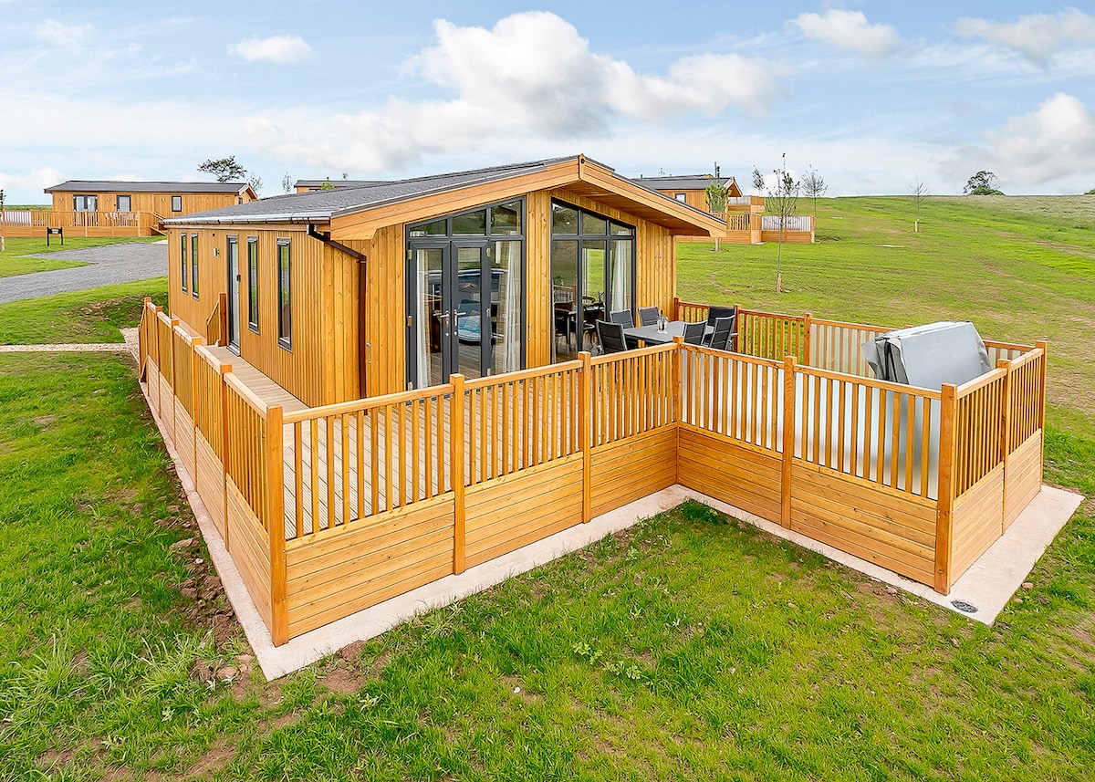Brandneuer Wohnwagen mit Whirlpool am Fluss Trent