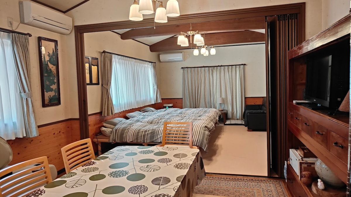 Unser Haus ist ein traditionelles Haus im japanischen Stil. 150 Jahre alt und in sehr ruhiger Lage. Wir vermieten ein Haus. Nicht gemeinsam mit anderen Gästen genutzt. Es gibt 2 Schlafzimmer (Tatami-Zimmer) und 1 Wohnzimmer, Spielzimmer, Badezimmer, Duschtoilette, alle Zimmer sind nur für dich. *Kinder sind kostenlos, wenn deine Kinder kein Bett und Frühstück benötigen. Es gibt Klimaanlagen im Schlafzimmer und im Wohnzimmer.