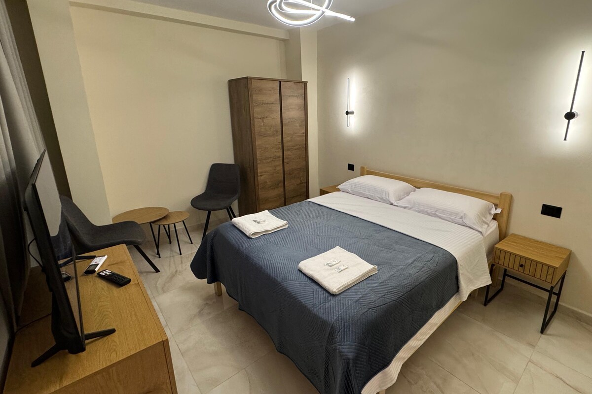- Große Wohnung mit Balkon mit 180-Grad-Blick auf das Stadtzentrum von Shkodra in einem der neuesten Gebäude des Landes. - Die Wohnung besteht aus einem großen hellen Wohnbereich mit Küchenzeile und Zugang zum Außenausgang, 1 großes Badezimmer und 2 gemütliche Schlafzimmer. - Günstig gelegen, zu Fuß zum Zentrum und zum Bus- und Taxistand, neben dem Migjeni-Theater. - Das Haus wurde vor kurzem mit gemütlicher Einrichtung renoviert.