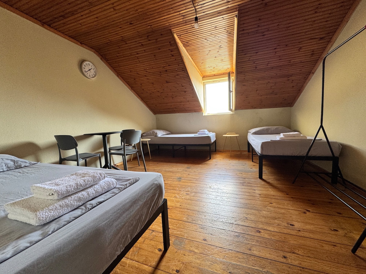 Dies ist ein Economy-Zimmer für Rucksacktouristen, die in der Regel mit ihren Haustieren reisen. Es verfügt über zwei lange Einzelbetten, Nachtlampen und einen Standventilator. Du hast Zugang zur Küche und zur vollen Toilette mit Dusche.
