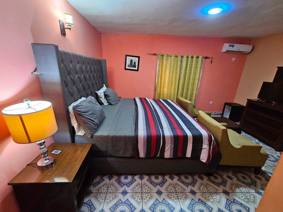 Home Secluded awaits you! This beautiful home is located off Wilkinson Road, Western Area. It’s only minutes away from the Lumley Beach and Freetown city activities. The home has a high fence and cctv around and also 24hr onsite security. Fully solar-powered home, with smoke alarm & fire extinguishers. This one bedroom has an Air Conditioner unit, Smart TVs & water heating. Exact location of the home will be disclosed upon booking.