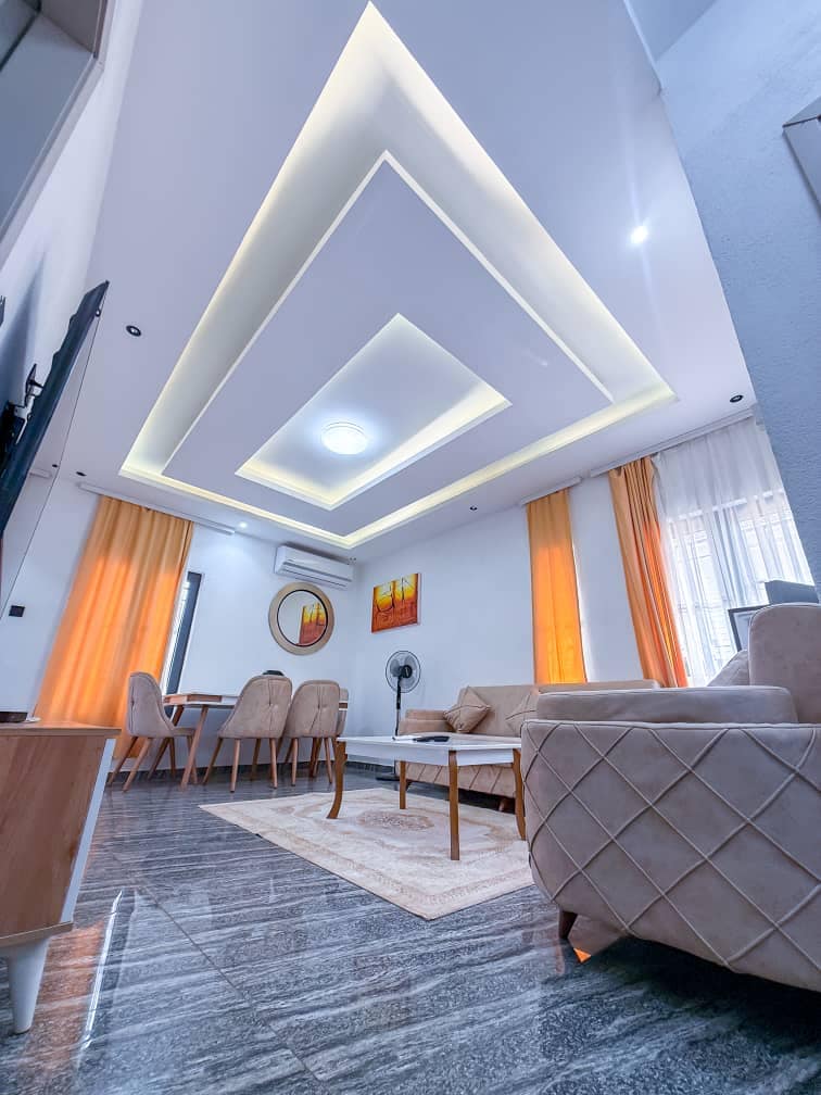 Gehobenes, voll möbliertes Haus mit 2 Schlafzimmern und 2 Bädern. Eine erstklassige Lage für Urlaub, Geschäftsreise oder Gruppenreisen. WLAN, Smart-TVs, Klimaanlagen in allen Schlafzimmern, Wohnzimmer und Essbereich. Kingsize-Bett im großen Hauptschlafzimmer mit eigenem Bad, Queensize-Bett im Gästezimmer. Küche mit Gasherd/Backofen, Mikrowelle, Kühlschrank mit Gefrierfach, Geschirr, Utensilien, Messerset, Kochgeschirr und Waschmaschine. 40KVA Backup-Generator, Rohrleitungswasser zusätzlich zu 26.000 Gallonen Wasserreservoir. Umzäunt, mit rund um die Uhr Sicherheit.