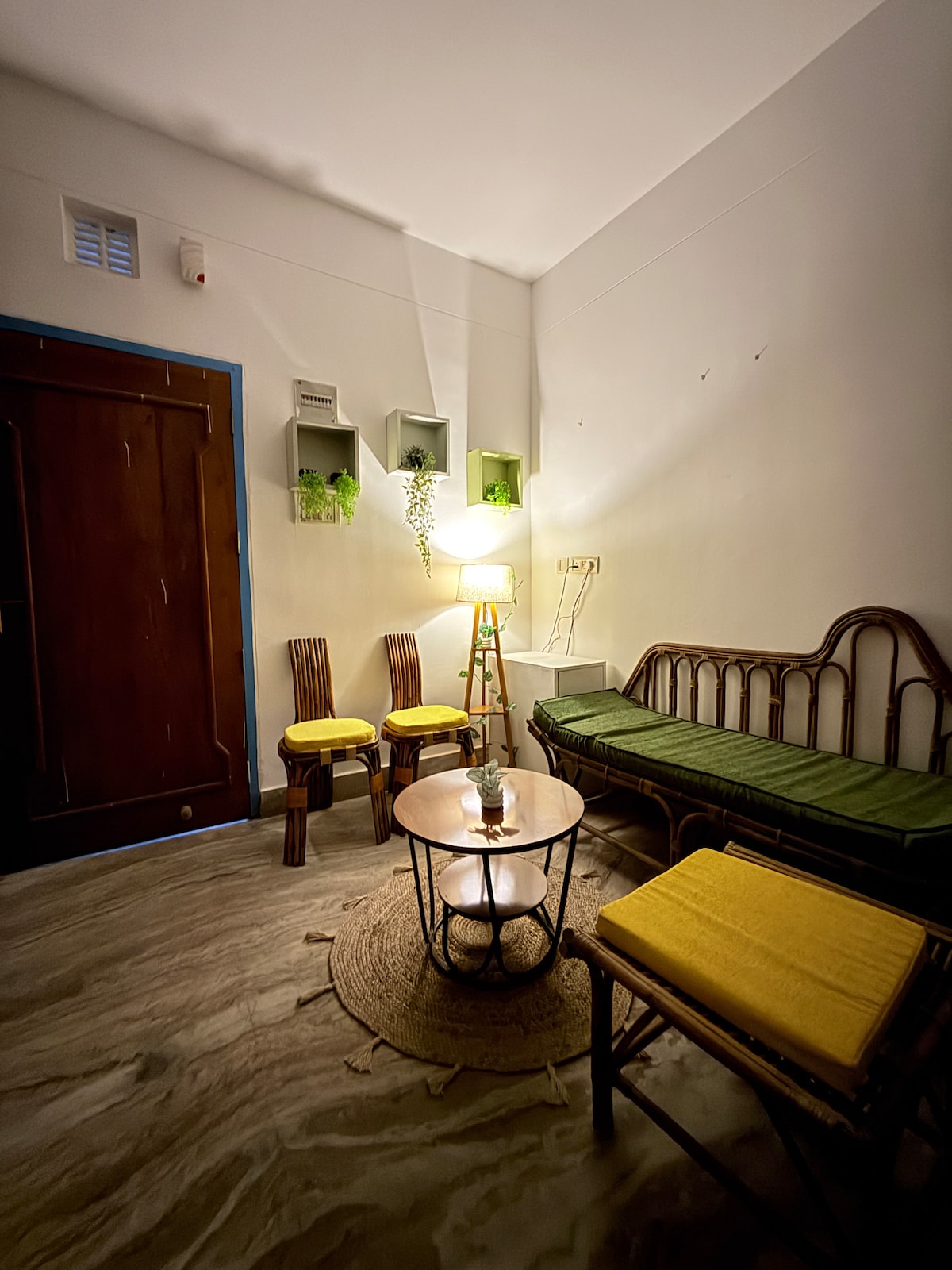 Willkommen in unserer gemütlichen und durchdacht gestalteten 3-Zimmer-Wohnung, perfekt für Familien, Gruppen oder mobile Arbeiter! Jedes Schlafzimmer verfügt über ein komfortables Queensize-Bett, einen Deckenventilator, einen Kleiderschrank mit Schließfach und eine eigene, einzigartige Atmosphäre. Zimmer 1: Unterhaltungsraum mit TV Zimmer 2: Das einzige Zimmer mit Klimaanlage, Arbeitsplatz und Geschichtenbüchern Zimmer 3: Erholungsraum zum Entspannen oder Strecken Genieße eine funktionale Küche, Highspeed-WLAN, einen Gemeinschaftsbereich mit indischen und westlichen Toiletten, ein separates Badezimmer mit Geysir und kostenlose Parkplätze!