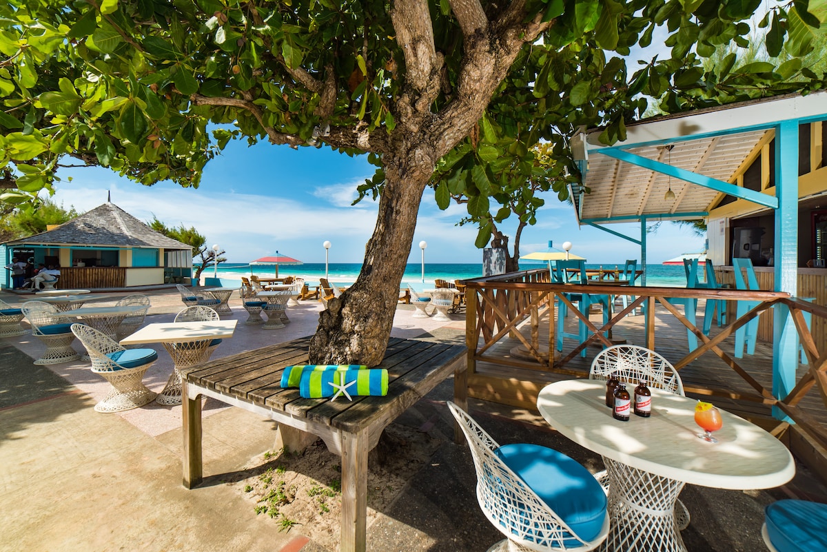 Bahia ist ein Ferienhaus mit 1 Schlafzimmer direkt an einem schönen Strand, der ideal zum Schwimmen ist.* Ideal für ein Paar oder eine Familie mit Kindern, die in einem Loft untergebracht werden können. Terrasse am Strand mit Hängematten und Gartenmöbeln. Klimaanlage und Ventilatoren. Koch inklusive. Nächtlicher Sicherheitsdienst. 50 Minuten vom Flughafen MBJ entfernt. Beliebte Sehenswürdigkeiten in der Nähe. Ein wirklich unvergesslicher, verjüngender Strandurlaub. 300 $ pro Nacht für 2 Personen, für weitere Personen siehe unten. *Strand/Wasser je nach Wetterlage