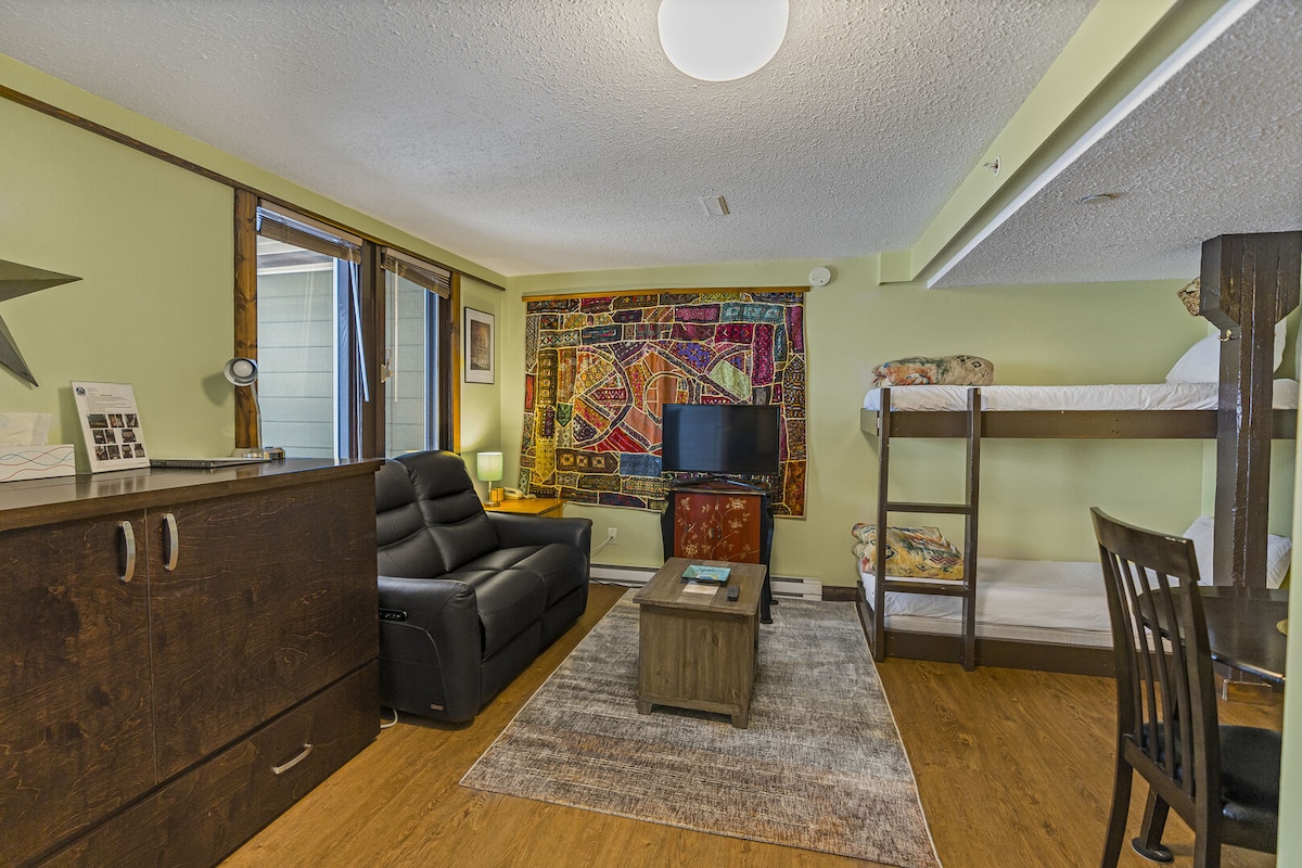 Diese gemütliche Studio-Suite in Creekside direkt über dem Silver Queen Chair ist der perfekte Winterurlaub. Alle Bereiche mit hoher Berührung werden vor der Anreise gereinigt. Mit Covid-Sicherheitsmaßnahmen Resort breit vor Ort bietet unser Studio gut Platz für 4 Personen mit einem Murphy-Bett und Schlafsofa. Eine voll ausgestattete Küche wartet und ein Gaskamin. In der Nähe des Brewers Pond, der Tube Town und der Bowlingbahn, was benötigst du mehr?