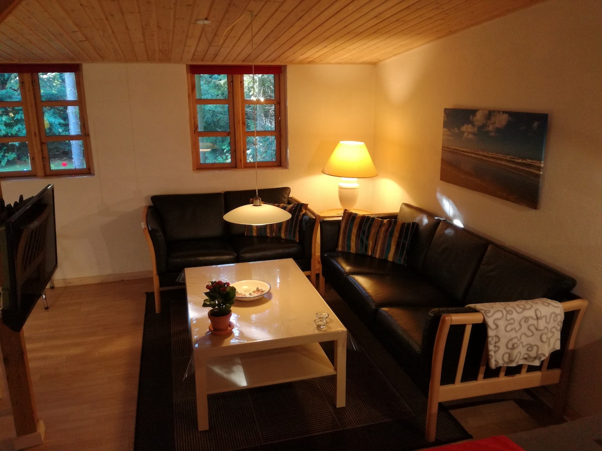 Hier finden Sie Ruhe, Entspannung und viel frische Luft. Das Haus liegt auf dem Land mit einer schönen Natur, die zu Spaziergängen und ruhigen Momenten mit einem guten Buch einlädt. Wenn die Familie auch einen Hund umfasst, dann gibt es hier viel Platz für Sie. Das Haus ist von einem großen Garten und Rasen umgegeben, sowie Terrassen an mehreren Seiten, so dass es morgens, mittags und abends schöne Plätze gibt. Im Wald in der Nähe des Hauses gibt es ein Schutz, den Sie auch benutzen können.