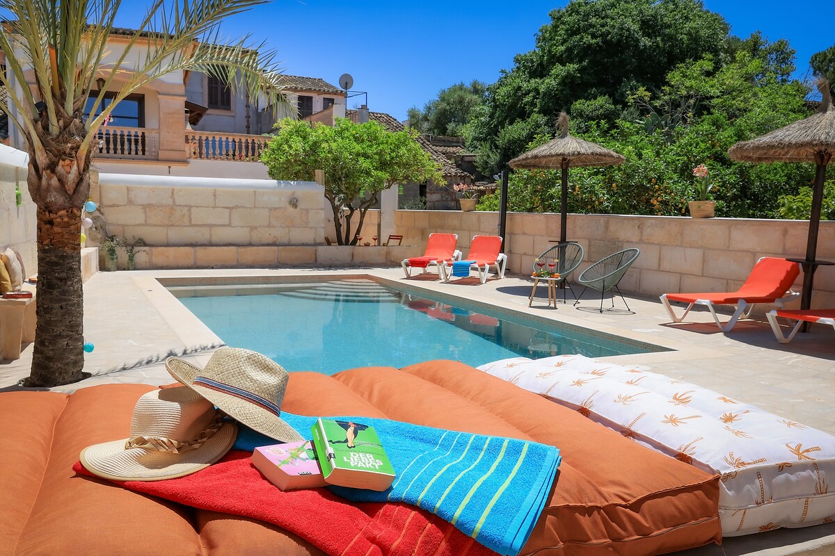 Charmantes mallorquinisches Haus aus dem Jahr 1932 im Herzen der Insel. Diese geräumige Residenz bietet bequem Platz für eine Gruppe von bis zu 8 Gästen und verfügt über einen privaten Salzwasserpool, einen üppigen mediterranen Garten und eine sonnenverwöhnte Terrasse. Genieße moderne, umweltfreundliche Annehmlichkeiten, nur 5 Gehminuten von authentischen Geschäften und Restaurants entfernt. Es ist der perfekte zentrale Ausgangspunkt, um die gesamte Insel zu erkunden, und bietet gleichzeitig einen ruhigen Rückzugsort abseits der Menschenmassen.