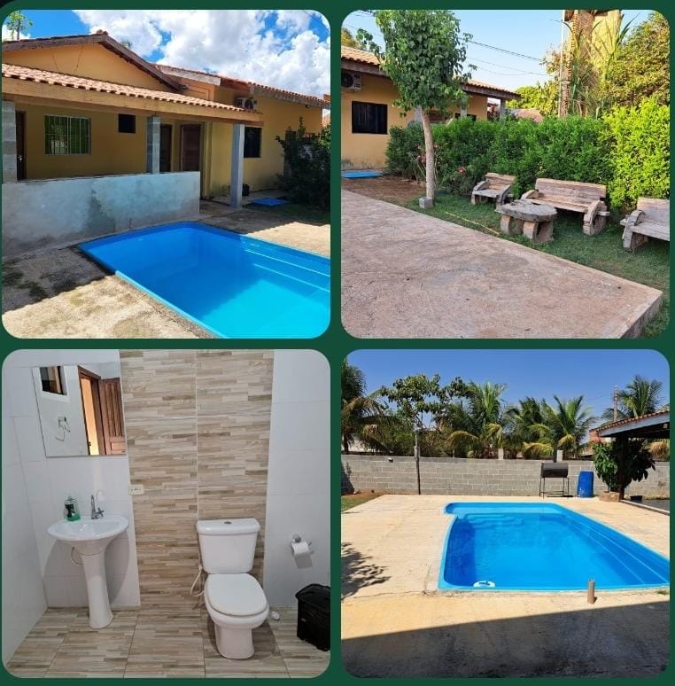 Perfekt, um Ihre Lieben zusammenzubringen, bietet unser Haus Komfort und Freizeit an einem Ort. Es gibt 9 Unterkünfte, die in 3 Schlafzimmer verteilt sind, darunter eine Suite, ideal für Privatsphäre und Erholung. Der Außenbereich verfügt über einen geräumigen Pool, perfekt für Momente des Spaßes und des Grills und eine gemütliche Atmosphäre für Zusammenkünfte. zimmer mit Fernseher und all dem Raum ausgestattet, um ruhige Tage zu bieten, sei es im Urlaub oder an langen Wochenenden.