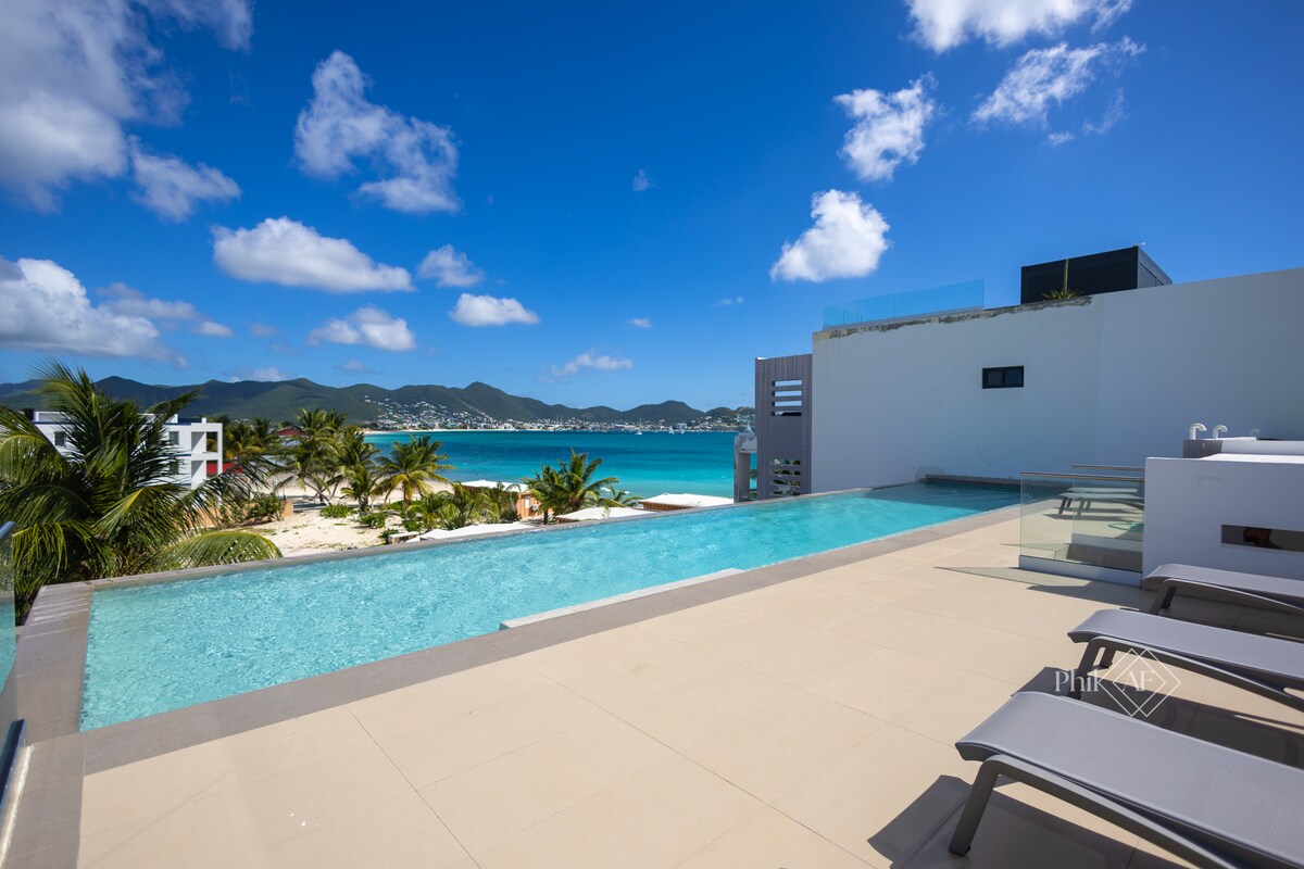 3 riesige Schlafzimmer mit tagelanger Aussicht, helfen dir, deine Sorgen in diesem geräumigen und ruhigen Raum zu hinterlassen. Dieses direkt am Strand gelegene Penthouse mit Dachterrasse bietet dir nicht nur einen Blick auf die Simpson Bay, sondern auch auf Maho Beach, sodass du beobachten kannst, wie die Flugzeuge hereinkommen. Darüber hinaus liegt dieses Penthouse direkt am Strand und buchstäblich nur wenige Schritte vom Strand entfernt. Zu den Annehmlichkeiten gehören ein Infinity-Pool, schnelles WLAN, OLED Sony TV, Theater-Soundsystem, moderne Gartenmöbel, dedizierte Parkplätze und VPN