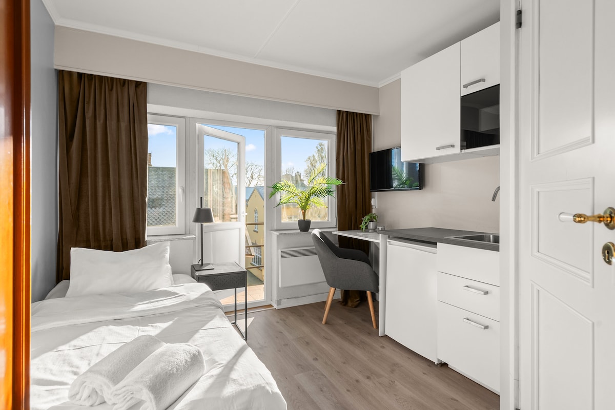 HOTELL PARK – SCHWEDENS KLEINSTES HOTEL Willkommen in unserem einzigartigen Hotel, einer Oase mitten im Herzen des Stadtzentrums von Strömstad. Wir sind wahrscheinlich Schwedens kleinstes Hotel, da es nur 1 Zimmer hat. Das Zimmer selbst ist absolut nicht klein, sondern die gesamten 24 Quadratmeter. Hier bieten wir ein exklusives Erlebnis in einem luxuriösen, neu renovierten und persönlichen Zimmer, in dem du sowohl die Ruhe als auch den Puls der Stadt genießen kannst. Perfekt für ein entspanntes Wochenende, einen aktiven Urlaub oder ein Archipel-Abenteuer. „Ein Hotel. Ein Zimmer. Nur für dich.“