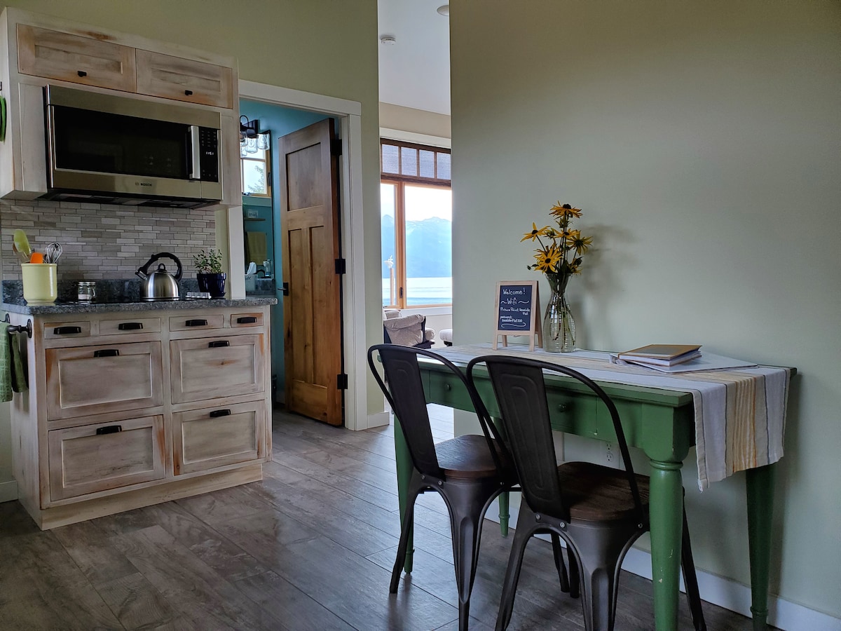 Der Name sagt schon alles. Direkt am Strand am Picture Point, nur eine Meile von der Stadt entfernt, bietet diese kleine Wohnung einen spektakulären Blick auf die Bucht, die Berge und den Hafen. Genieße deinen Morgenkaffee auf der Terrasse, mache einen Spaziergang am Strand oder beobachte einfach, wie Robben, Seelöwen und Wale vorbeischwimmen. Rabatte auf ausgewählte Haines-Touren exklusiv für unsere Gäste!