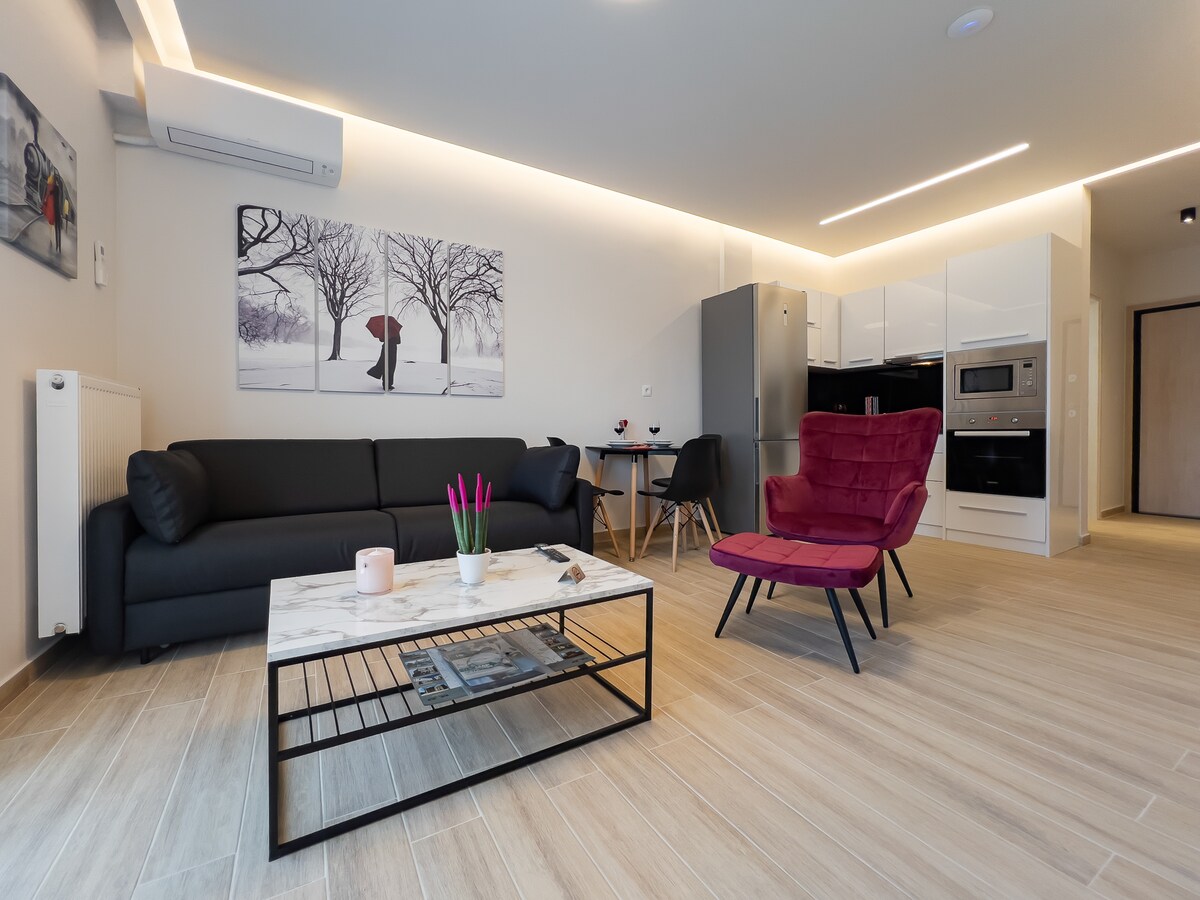 Eine Oase der Entspannung und Eleganz im Herzen der Stadt. Der Comfort-Raum ist ideal für alle, die Komfort, Funktionalität und Stil suchen. Bis zu: 4 Personen + 1 Kind 🛏️ Entspanne dich in einer Unterkunft, in der Details den Unterschied machen. 🫧 Gönn dir das Gefühl von Luxus mit Papoutsanis-Produkten und Nef-Nef-Bettwäsche. 💻 Exklusive Zusammenarbeit mit einem Coworking Space in der Gegend, ideal für diejenigen, die aus der Ferne arbeiten oder beruflich reisen. 📍 Schlüssellage: zentral, aber ruhig, neben allem.