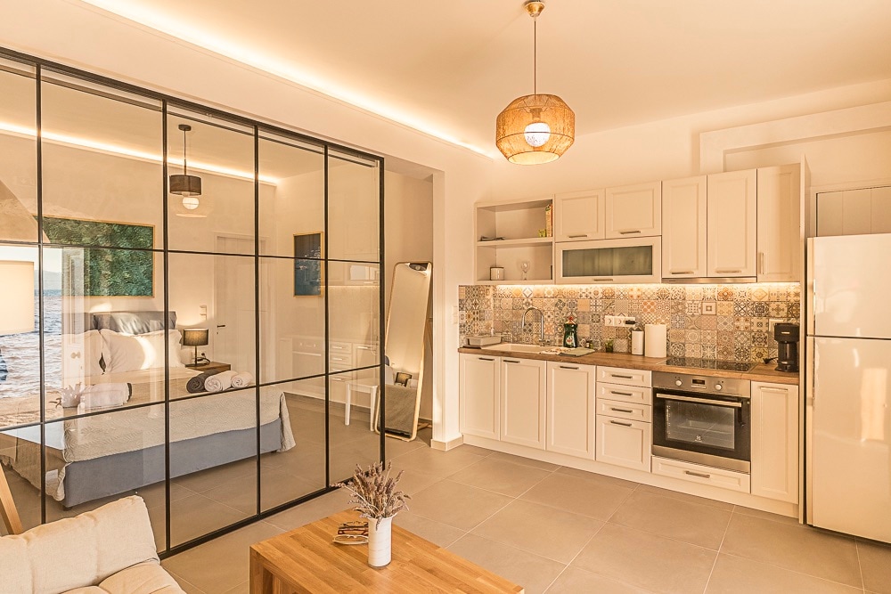 A beautifully built stone house overlooking the small picturesque Kamini port and a 180-degree view of the Argosaronikos sea. Staying here will have you eating your Greek breakfast on the stone-paved terrace enjoying the most amazing seaview of the island, as well as looking forward to cocktail time to enjoy the most breathtaking sunset. A serene hideout to trully relax and enjoy the beauty and magic that Hydra has to offer to you...
