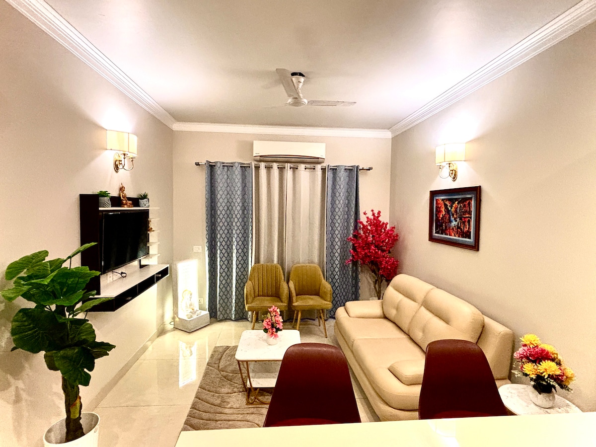 Enjoy a cozy yet luxurious stay in this fully furnished 1BHK apartment – perfect for solo travelers, couples, or business trips. Features a King-size bed, Smart TV with Netflix, a fully equipped kitchen, high-speed Wi-Fi, and a dedicated workspace. Access top-notch amenities: swimming pool, gym, golf course, horse stable, water park & more! Located in a secure, well-connected area with regular housekeeping. Book now for the ultimate stay experience