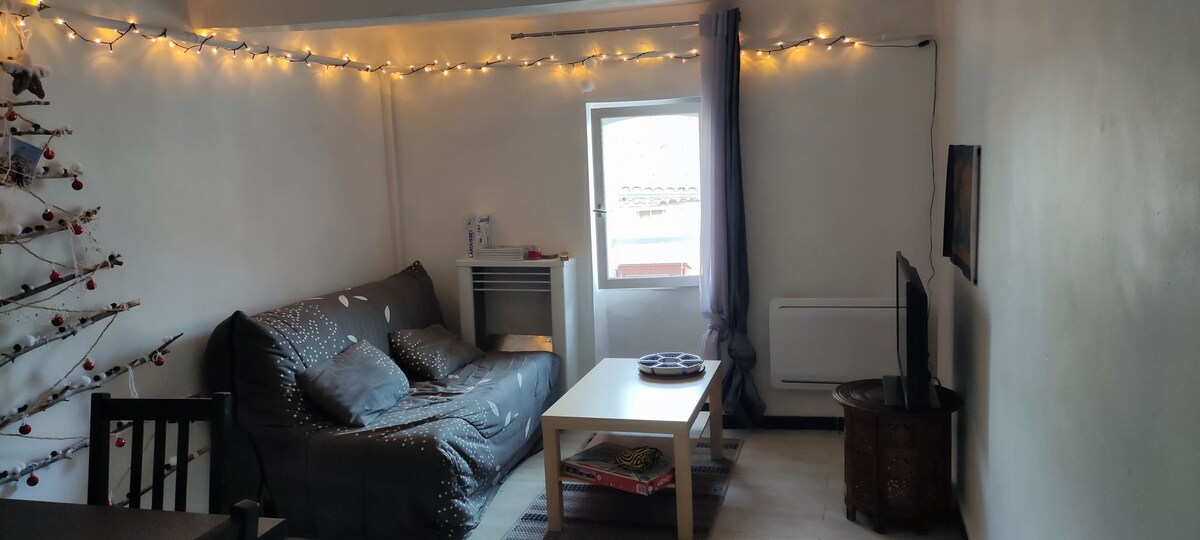Wohnung T2 von 50 m2, im zweiten Stock eines alten Gebäudes im Herzen des Stadtzentrums, in der Fußgängerzone, in Toulon. Lebendige und freundliche Nachbarschaft, Weinbars, Restaurants, Geschäfte und Läden, Galerien, am Fuße des Gebäudes! Sie besteht aus einem schönen Wohnzimmer, Wohnzimmer mit 2 Sofas (einschließlich einem Schlafsofa) und Esszimmer, einer ausgestatteten Küche und einem großen Schlafzimmer (Bett 160 cm) mit Bad (Badewanne) und WC. Sie sind 10 Minuten zu Fuß zum Bahnhof, 2 Minuten zu den Bussen und Booten