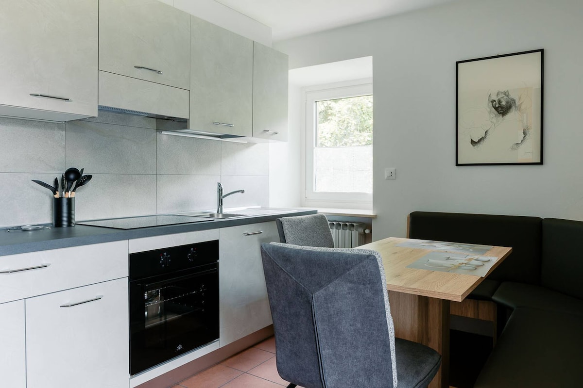 Meine Wohnung befindet sich in Valt, einem kleinen Dorf, das aus alten Häusern und alten Scheunen besteht und von der Ruhe der Wälder umgeben ist. Die kürzlich renovierte Wohnung befindet sich im Erdgeschoss und vor den Fenstern befinden sich nur Wiesen, Wälder und Berge. Die Wohnung ANNA ist eine gemütliche Studiowohnung für bis zu 4 Personen. Größere Gruppen können die angrenzende Zwei-Zimmer-Wohnung MARCO mieten, die 4 Schlafplätze bietet.