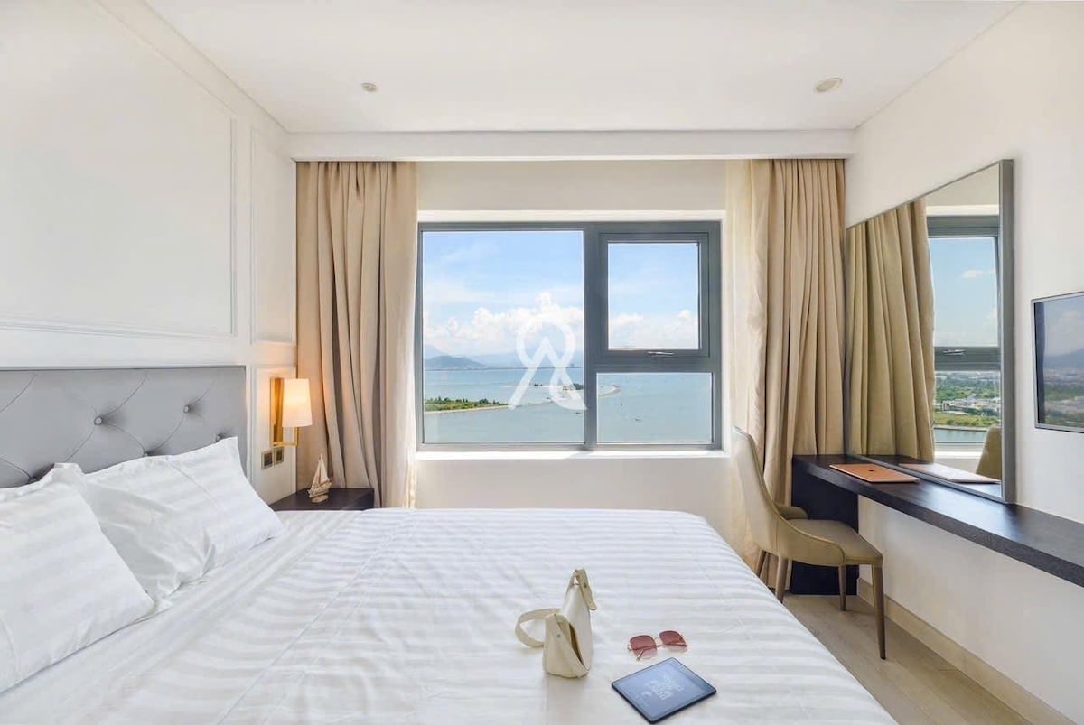 Dies ist ein Zimmer, das der Eigentümer gekauft hat, daher haben wir das Recht, den Preis festzulegen. Der Preis, den wir anbieten, ist nur die Hälfte des Preises eines 5-Sterne-Hotels, aber die Qualität ist die gleiche. - Das Zimmer verfügt über einen eigenen Balkon und einen schönen Blick auf die Bucht. Fläche 37 m ². - Das Zimmer verfügt über ein privates Badezimmer mit stehender Badewanne - Bett ist 1m8x2m - Handtücher und Toilettenartikel zur Verfügung stellen