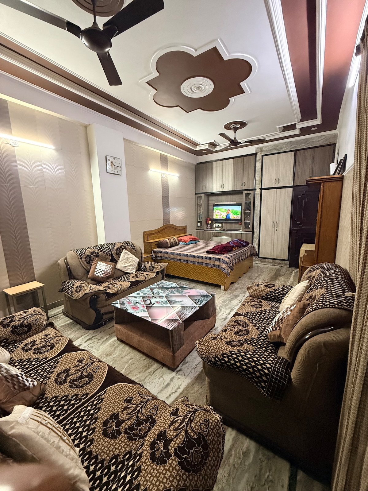 Namaste! In der erstklassigen Gegend der North Delhi University befinden sich berühmte Bäckereien und Cafés direkt auf deinen Spuren. Es ist eine private Etage mit Küchenzeile, einem kleinen Tempel und einem Hauptschlafzimmer mit fast 1000 Quadratfuß. Mit eigenem Balkon und Terrasse. Es befindet sich im 3. Stock ohne Aufzug, Gepäckhilfe wird nur auf vorherige Anfrage zur Verfügung gestellt.