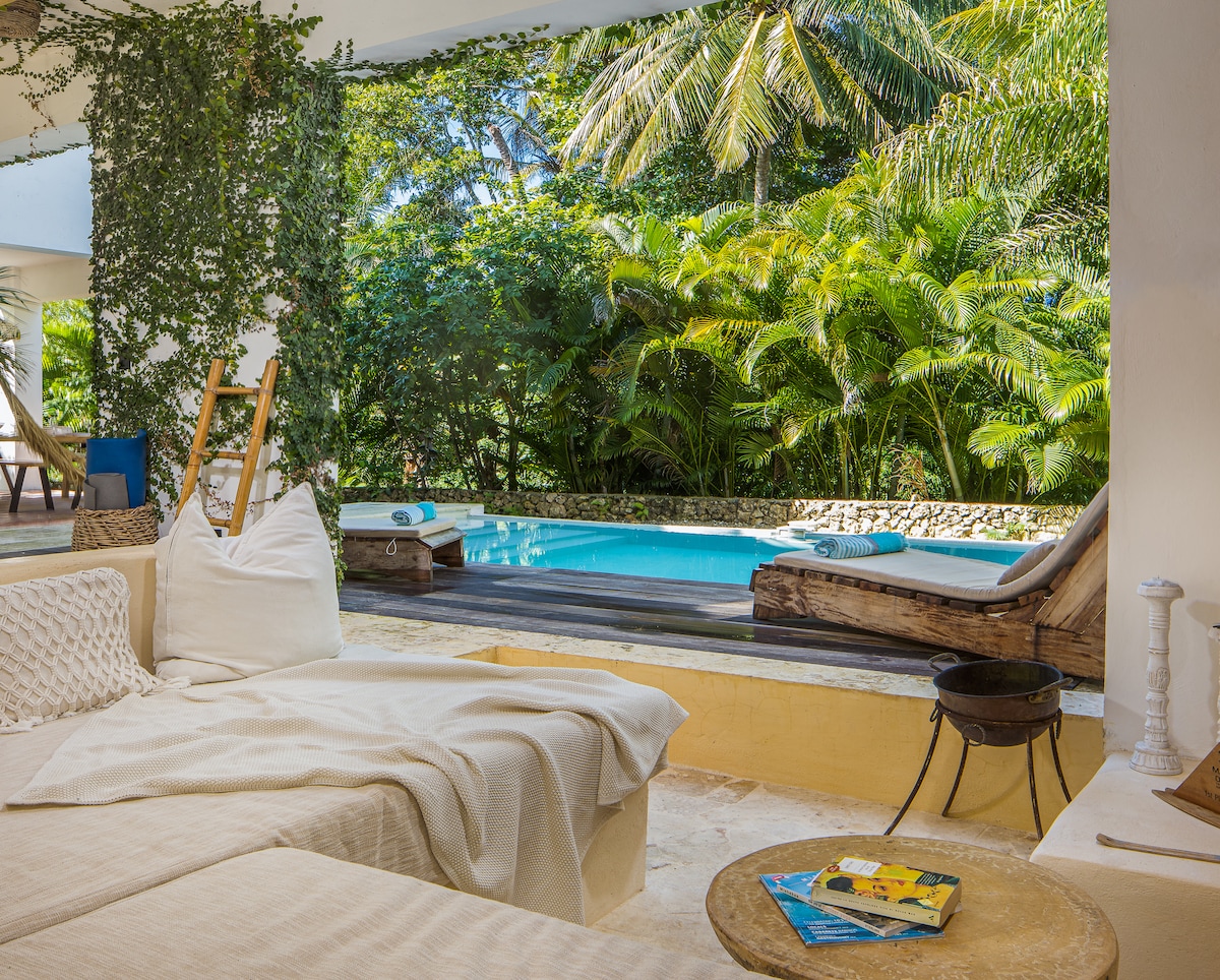 🌴 Palm Escape – Deine stilvolle private Villa nur 10 Gehminuten vom Encuentro Beach entfernt! Genieße eine wunderschön gestaltete moderne Villa mit einem privaten beheizten Pool (auf Anfrage), einem üppigen tropischen Garten, einer schattigen Terrasse, Klimaanlage, Smart-TVs, einer kompletten Küche, einem Grill im Freien und einem atemberaubenden individuellen Wandgemälde eines renommierten dominikanischen Künstlers. Befindet sich in einer sicheren Wohnanlage mit 24/7-Sicherheitsdienst. Perfekt für Paare, Familien oder Freunde, die Komfort und karibischen Charme suchen. 💦☀️