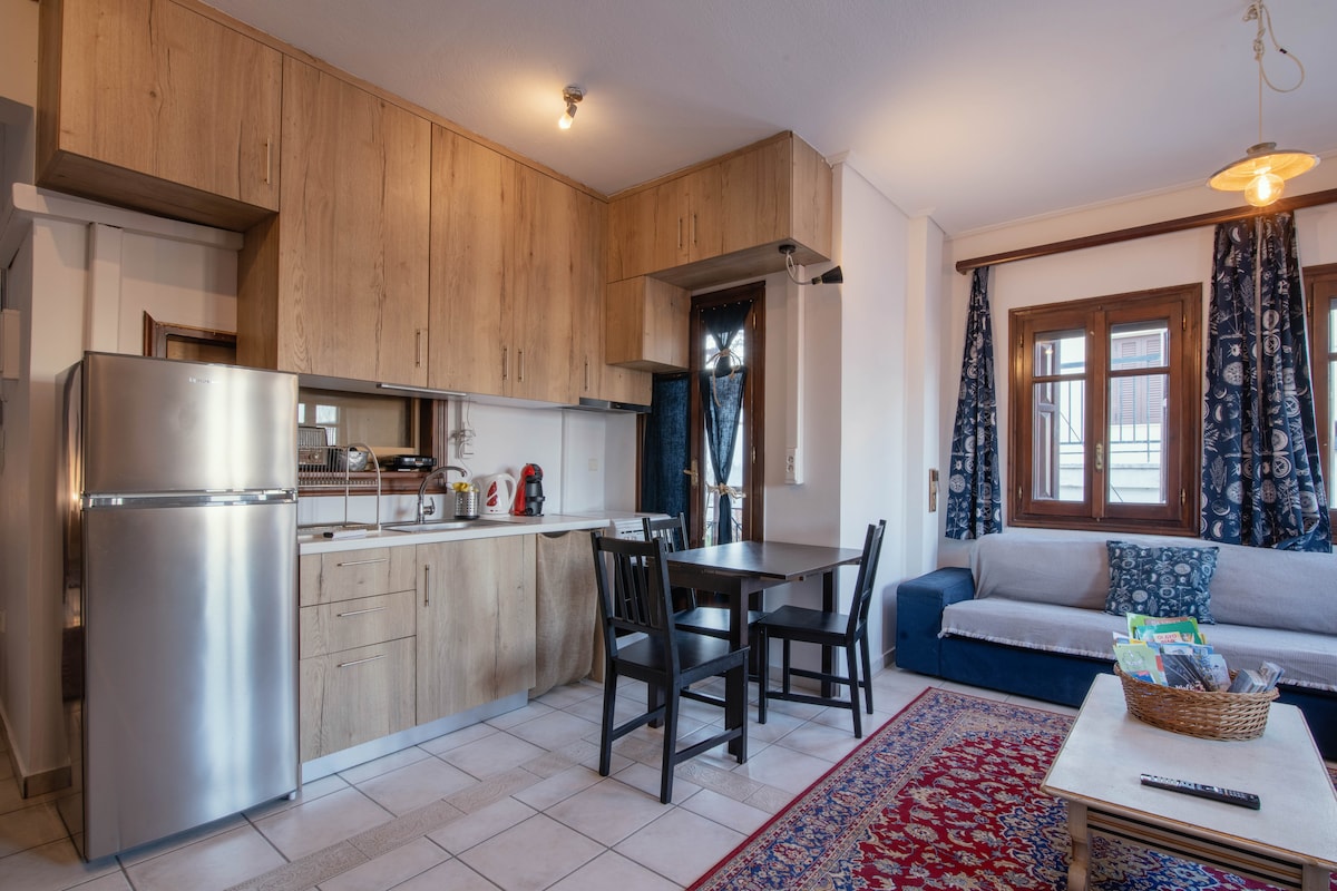 Modernes, neues Studio, in dem du unter den Felsen von Meteora aufwachen kannst. Dieses voll ausgestattete Studio ist perfekt für Reisende und Paare, die einen unvergesslichen Urlaub suchen. Beginne deinen Morgen mit einem traditionellen griechischen Kaffee in unserem Hof. Genieße die Ruhe und die Klänge unseres eigenen privaten Refugiums, mit dem Abenteuer von Meteora vor deiner Haustür!