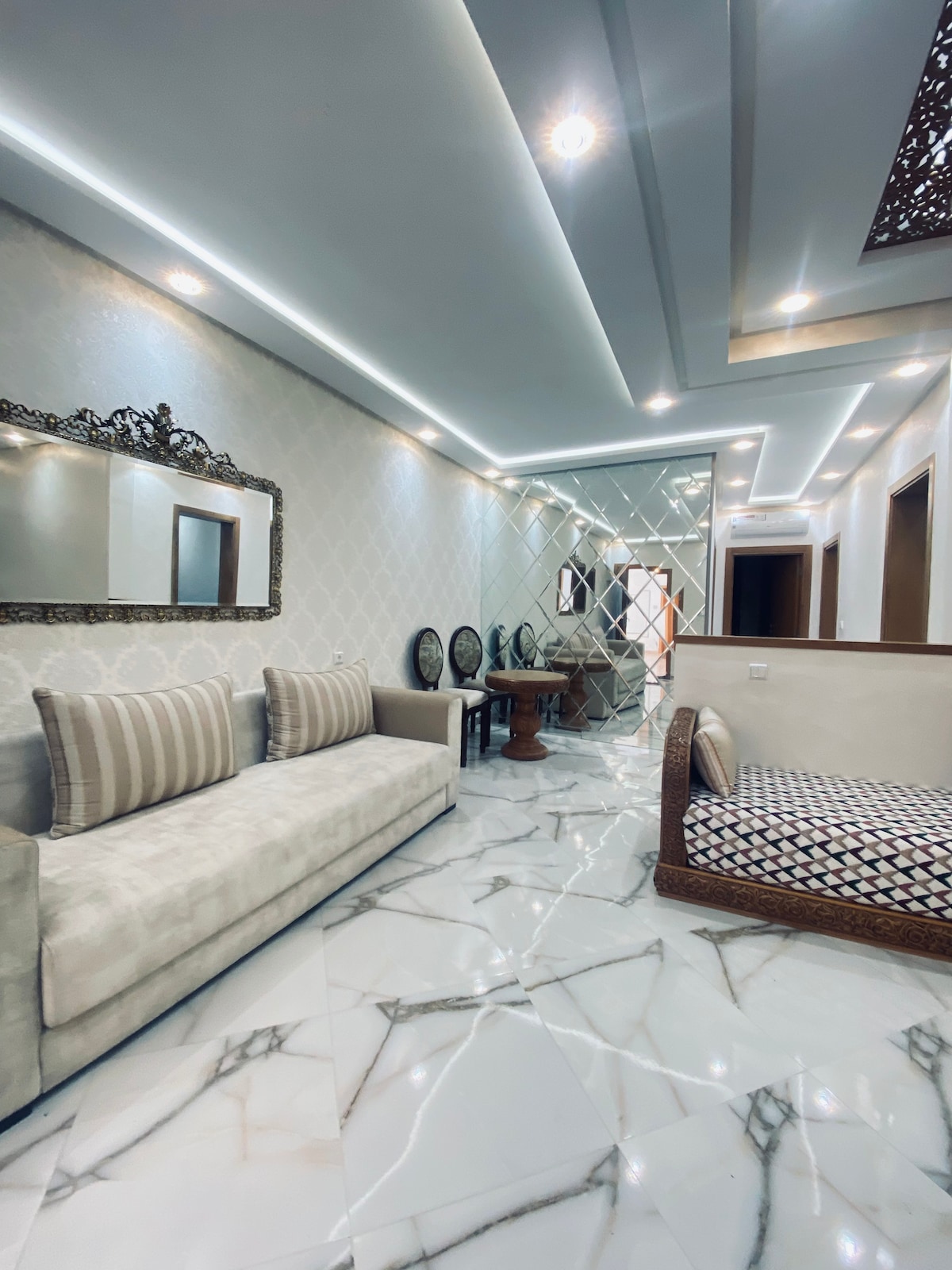 ⛔️ Marokkanische Paare sind nicht erlaubt 🌴Genieße einen stilvollen Aufenthalt in Housewood Oasis, einer hellen, zentral gelegenen Wohnung in Ouarzazate. Dieser elegante Raum mit 2 Schlafzimmern bietet einen Whirlpool , ein Essen im marokkanischen Stil, einen PS4 Pro und einen 65-Zoll 4K-Fernseher und eine handwerkliche Einrichtung. Perfekt für Paare, Familien oder digitale Nomaden . Genieße die Aussicht von den Balkonen oder entspanne dich im gemütlichen Salon. Hausregeln: - Check-in um 14:00 Uhr - Check-out um 12:00 Uhr - Gast nicht erlaubt - Keine Partys erlaubt. - Keine kommerziellen Dreharbeiten