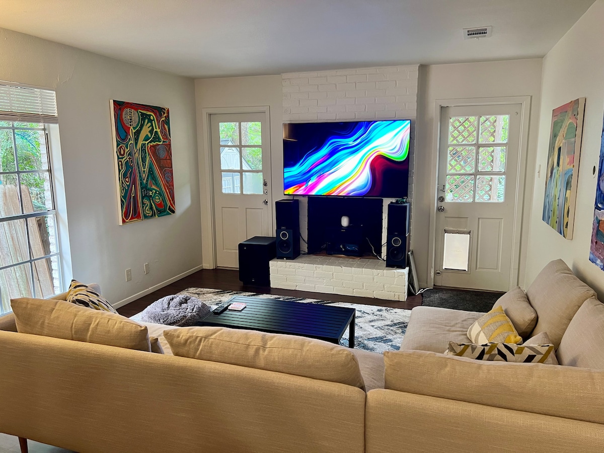 Perfekter Rückzugsort in South Austin, nur wenige Minuten vom pulsierenden South Congress, dem trendigen South Lamar, dem legendären Barton Springs, dem malerischen Lady Bird Lake und dem Herzen von Downtown entfernt, mit kostenlosen Parkplätzen. Im Inneren findest du ein geräumiges Schlafzimmer mit einem luxuriösen Kingsize-Bett und reichlich Stauraum. Große Fenster für natürliches Licht (Vorhänge sind an allen Fenstern für Privatsphäre). Für zusätzlichen Schlafplatz verfügt das gemütliche Wohnzimmer über ein bequemes Queensize-Bett, das aus der komfortablen Couch herausgezogen werden kann.