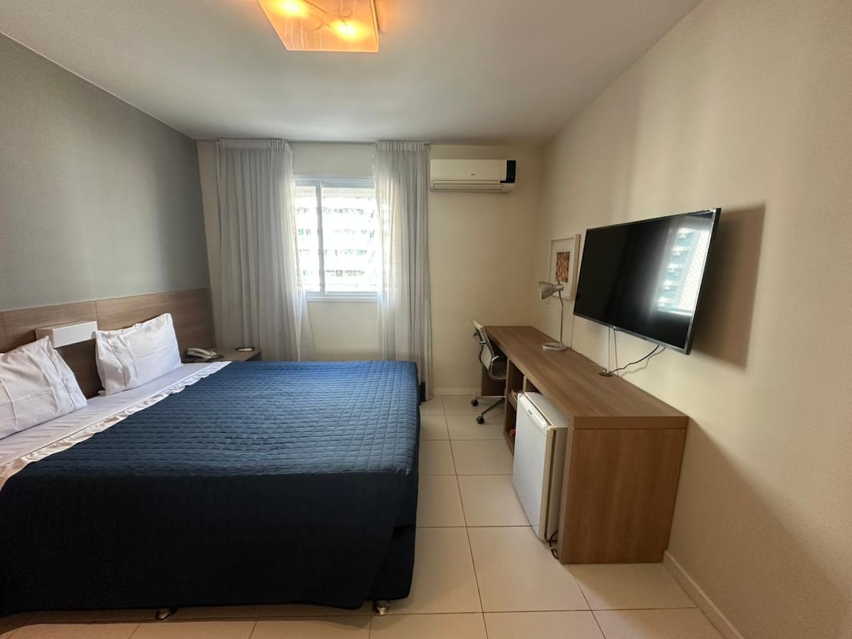 Eine ausgezeichnete Wahl für diejenigen, die Komfort und Funktionalität für Spaziergänge oder Arbeit suchen. Gegenüber dem Strand von Barra da Tijuca mit teilweisem Meerblick, haben wir eine Infrastruktur mit Pools, Fitnessraum, Kino, Schönheitssalon, kostenlose Parkplätze... Die moderne Unterkunft verfügt über eine Küche, Klimaanlage, ein Doppelbett und einen Balkon mit einer tollen Aussicht. Gut gelegen, vor dem Strand von Barra an der Post 5, neben Geschäften und Restaurants und in der Nähe von Einkaufszentren, Konzerthallen, Sehenswürdigkeiten...