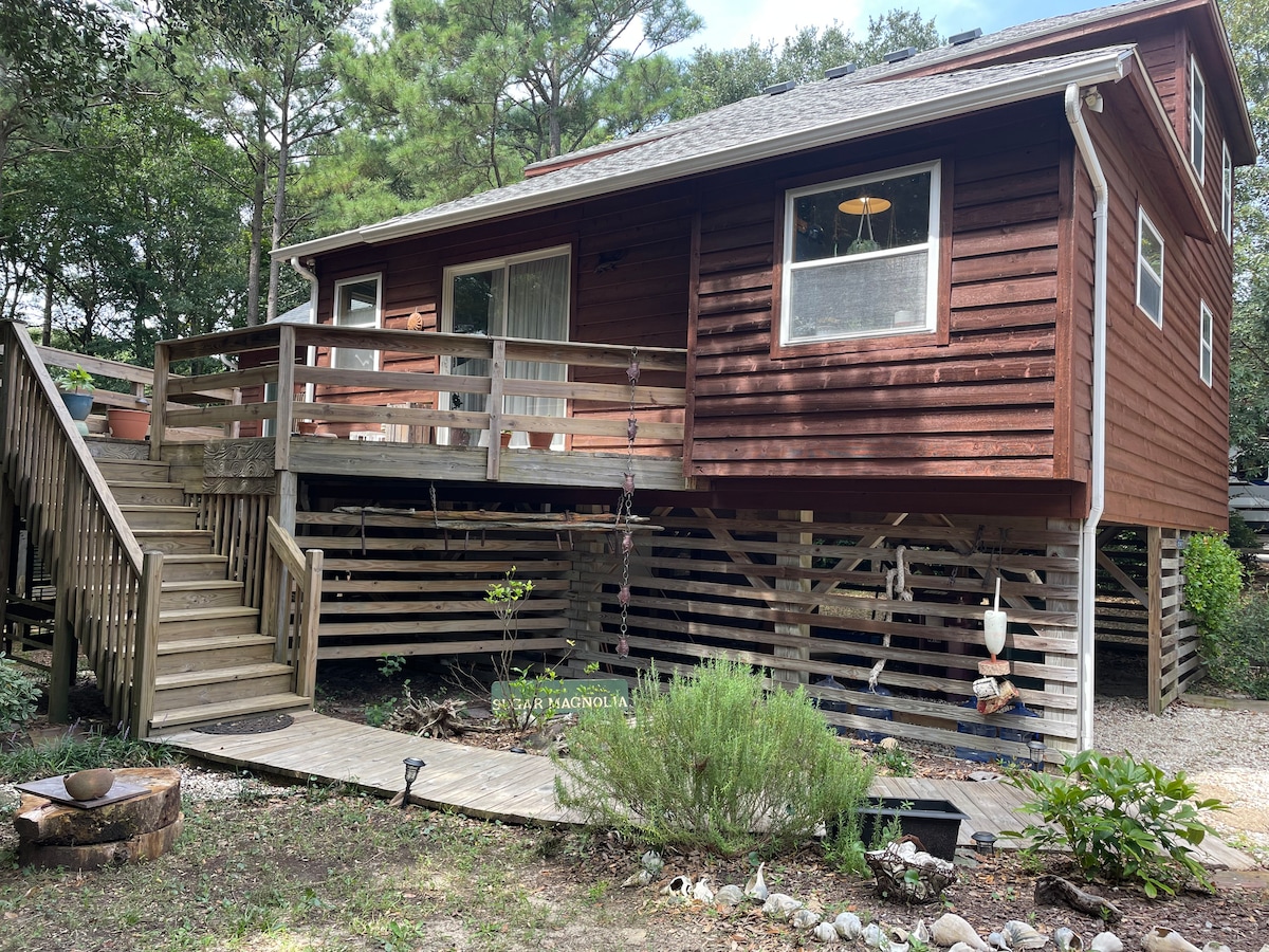 [aktualisierte Etagen und Wohnzimmer 2025 - Bilder kommen] Eingebettet im Herzen von Southern Shores liegt unser Haus abseits des typischen hektischen Treibens der Resort-Gebiete Kitty Hawk, Kill Devil Hills und Duck, während wir nah genug sind, um zum Strand zu gehen! Eine 15-minütige Radtour in die Stadt Duck (2 Fahrräder werden bereitgestellt) bietet einen Nachmittag zum Einkaufen, Essen und Trinken mit deinen Freunden, ohne die Kopfschmerzen des Verkehrs und der Parkplätze.