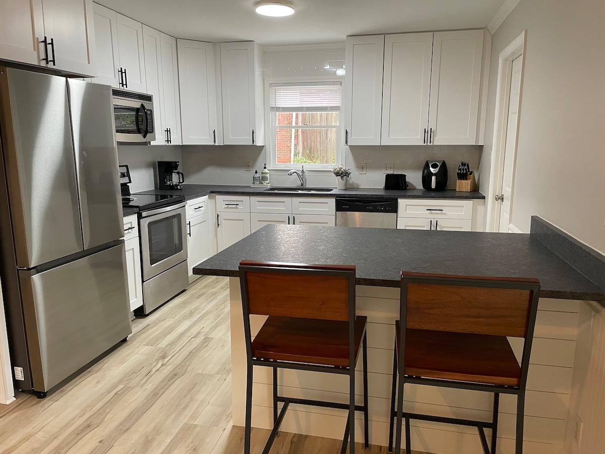 Streame deinen Lieblingsfilm auf einem 42-Zoll-HDTV, während du in einer Küche mit maßgefertigten Holz- und Granitarbeitsplatten kochst. Ein Laptop-freundlicher Arbeitsplatz ist ebenfalls vorhanden, plus 3 zusätzliche Smart-TVs anderswo. Das Badezimmer verfügt über Carrara-Marmor und weiße U-Bahn-Fliesen. Genieße den offenen Grundriss unseres neu renovierten Hauses, den umzäunten Hinterhof, die überdachte Veranda, die Terrasse, den privaten Parkplatz und alle modernen Annehmlichkeiten. Nutze den bequemen Zugang zum Greenway oder mach es dir auf einem von 3 HD-Smart-TVs gemütlich. Du kannst deine Lieblingsfilme streamen, während du in unserer gut ausgestatteten Küche das Abendessen kochst, oder die Nähe zu Charlottes bestem vietnamesischem Restaurant, Lang Van, nutzen. Einfacher Check-in über das Tastenfeld. Erreichbar per Telefon, SMS, E-Mail oder Klingel. Im Buch des Gastgebers findest du Empfehlungen für Restaurants, mit viel Auswahl in NoDa und Plaza-Midwood, die jeweils etwa 3 Meilen entfernt sind. Sieh dir Shows und Sportveranstaltungen im Ovens Auditorium und Bojangles Coliseum an, wobei die Innenstadt nur 5 Meilen entfernt ist.