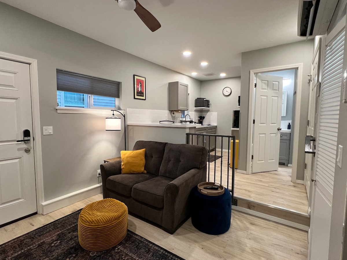 Enjoy a private entrance to this cozy daylight basement studio near walking trails and the Little Spokane River, just 5 minutes from shopping and dining. Inside, you’ll find luxury vinyl plank floors, a stylish pallet wall, and fresh paint. Rest easy on the BEST king bed (guests rave about it!) or the IKEA queen pullout, perfect for kids or an extra guest. Amenities include WiFi, Roku TV, and a DVD player with movies. Traveling with an RV or trailer? Expanded parking is available!