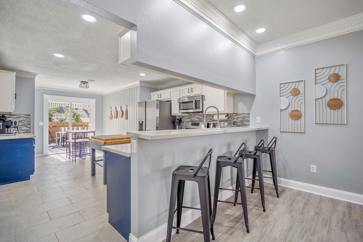 Willkommen bei Serenity Stays in Sandpebble! Dieses geräumige Haus mit 3 Schlafzimmern und 2 Badezimmern ist perfekt für die ganze Familie, auch für Kinder! Das offene Wohnkonzept ermöglicht Spaß zwischen Freunden, während die Outdoor-Szene die Grillliebhaber willkommen heißt. Unsere voll ausgestattete Küche öffnet sich zu einer von drei Terrassen hin. Jede Terrasse bietet ihren eigenen einzigartigen Bereich für Aktivitäten, einschließlich einer Feuerstelle, eines Gasgrills, eines Essbereichs im Freien und viel Loungebereich. Werde kreativ und veranstalte dein nächstes Familienevent unter den Lichterketten!