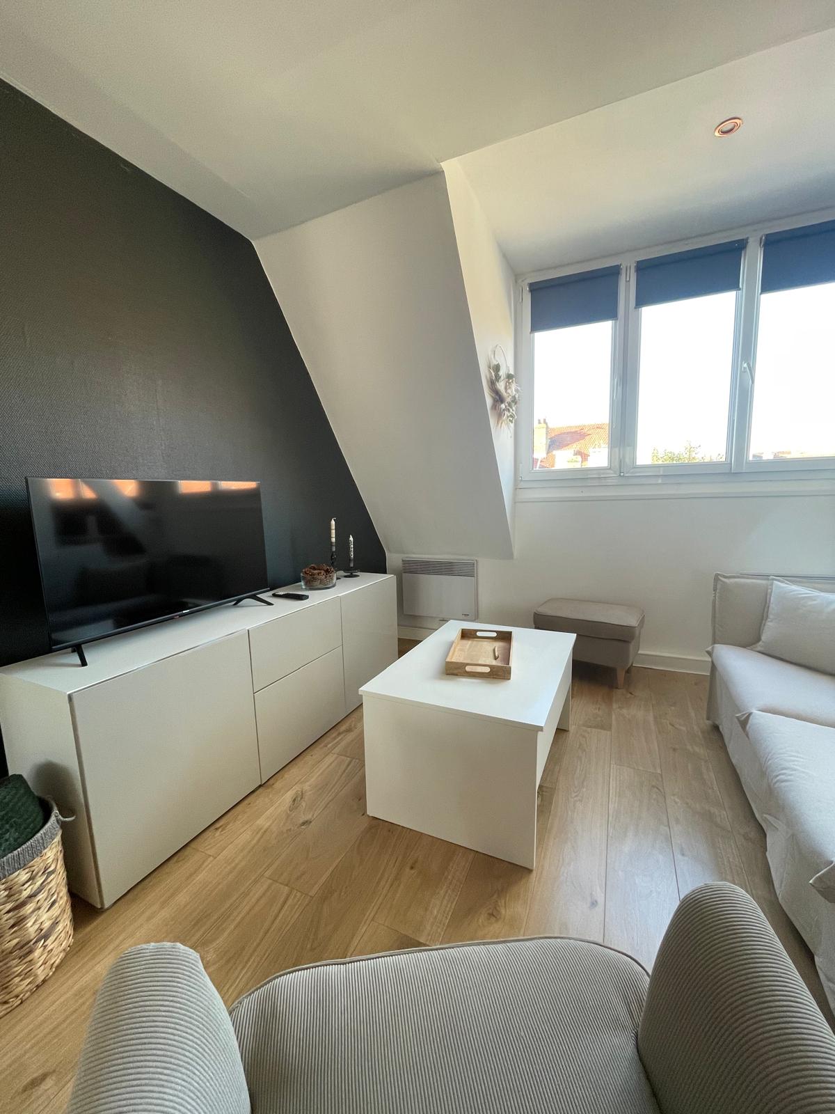 Genießen Sie eine elegante und gemütliche Unterkunft. Ideal gelegen, in der Nähe des Strandes und der Geschäfte (2 Minuten zu Fuß). Sehr helle, komplett renovierte Wohnung für 2 Personen. Im 3. Stock ohne Aufzug (nicht für Personen mit eingeschränkter Mobilität geeignet), 1 Schlafzimmer im Zwischengeschoss mit Kleiderschrank und Bett 160 x 200. Neue Einbauküche, offen zum Wohnzimmer, lichtdurchflutetes Esszimmer und Bad mit Dusche.