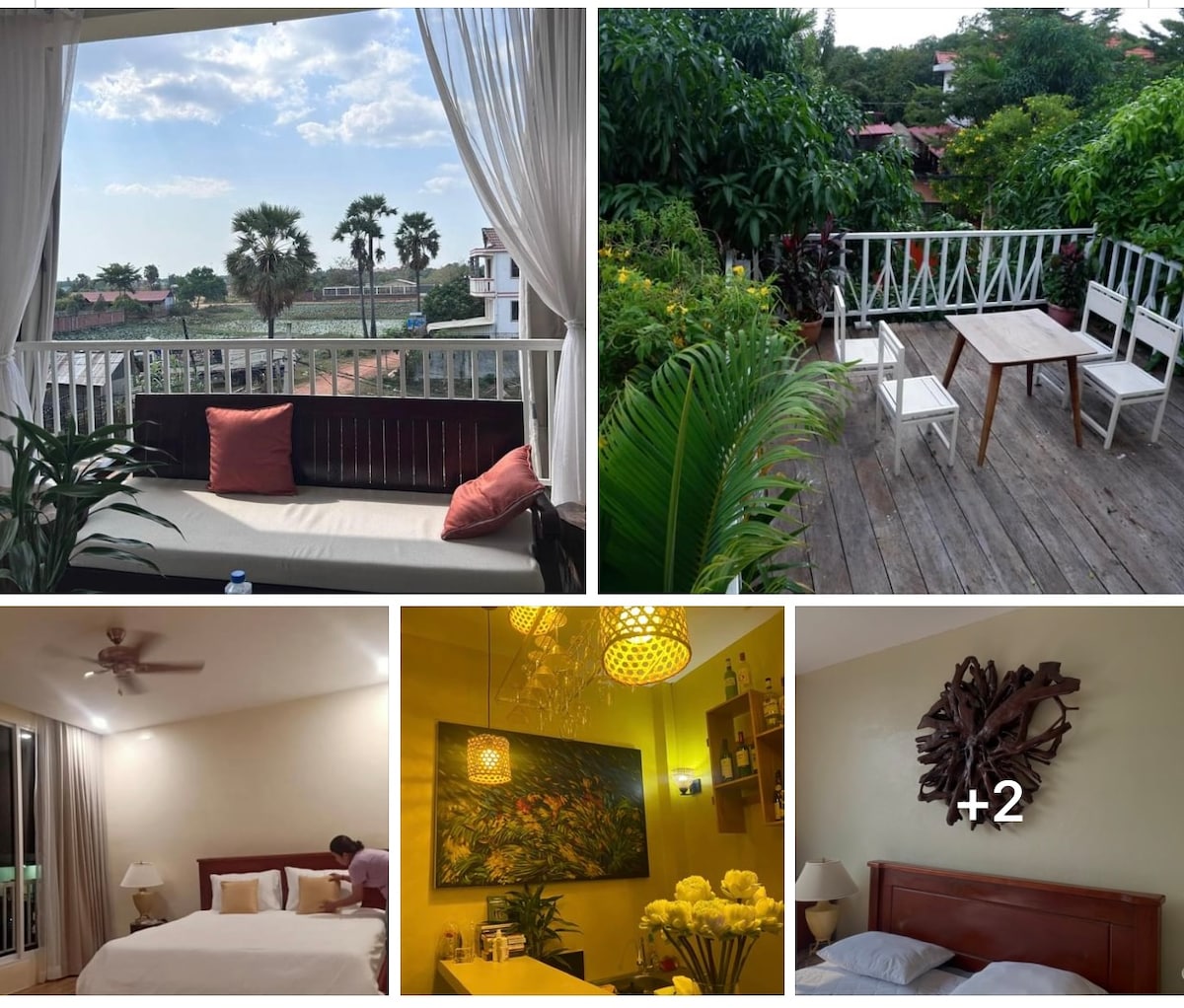 Das Gebäude bewahrt den gemütlichen Charme eines traditionellen kambodschanischen Holzhauses, während es geschmackvoll moderne und komfortable Annehmlichkeiten verbindet. Umgeben von einem Reisfeld mit frischer Luft 24 Stunden. 5 Autominuten vom Markro Supermarkt Siem Reap entfernt. Dies ist ein sauberes und friedliches Anwesen. Mehr als 80 % der Unterkunft sind Grünflächen und Gemüsegärten. Wir konzentrieren uns auf Freundlichkeit, Gentility und ein breites Lächeln. Die Zimmer sind einfach, aber sauber und komfortabel. Willkommen in unserem ländlichen Dorf.