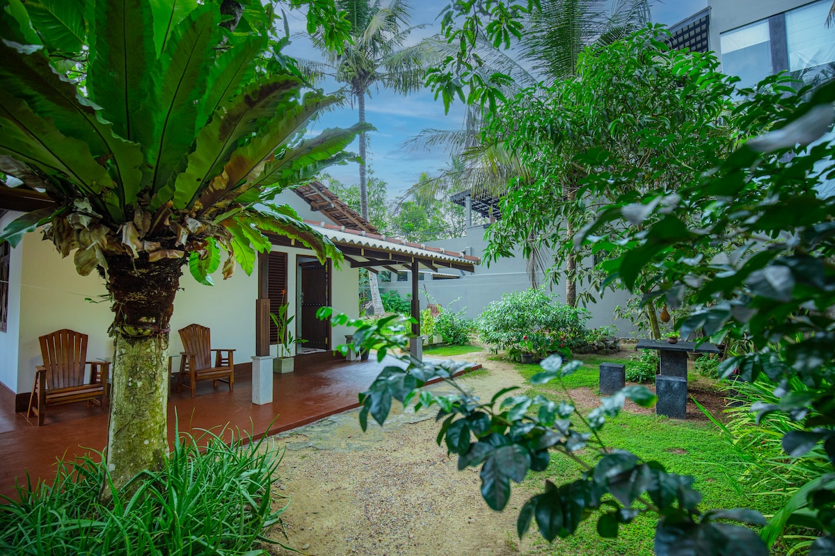Ein europäisches Strandhaus zur Selbstverpflegung in einer abgelegenen Bucht in Thalaramba, nur wenige Minuten von der lebhaften Mirissa entfernt und bietet stilvolle Unterkünfte. Perfekt für ein Paar im Hauptschlafzimmer und im neu gestalteten zweiten Schlafzimmer hat zwei Einzelbetten für 2 Kinder oder 2 Erwachsene. Geschmackvoll im sri-lankischen Kolonialstil eingerichtet mit separatem Wohnzimmer und gut ausgestatteter Küche. Glasfaser-WLAN-Verbindung mit 100 Mbit/s für diejenigen, die als digitale Nomaden arbeiten. Es gibt KEINE Klimaanlage, aber Ventilatoren.