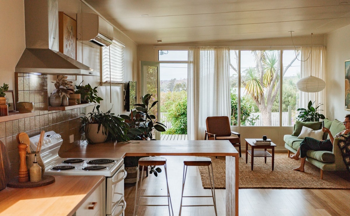 Muka in Akaroa. Eine ruhige kleine Surfhütte am Rande von Akaroa, in einer verschlafenen Sackgasse, nur wenige Minuten vom Strand Beer Barrel und den Peron Dunes entfernt. Die einst meerschaumgrüne Hütte wurde 1972 erbaut und liebevoll restauriert. Mit einigen nostalgischen Akzenten wurden die Scheunentüren und das Surfbrett aus den alten Etagenbetten der ursprünglichen Hütte hergestellt. Ein heller und luftiger Raum wurde geschaffen, um Freunde und Familie zu unterhalten, ein zweites Zuhause.