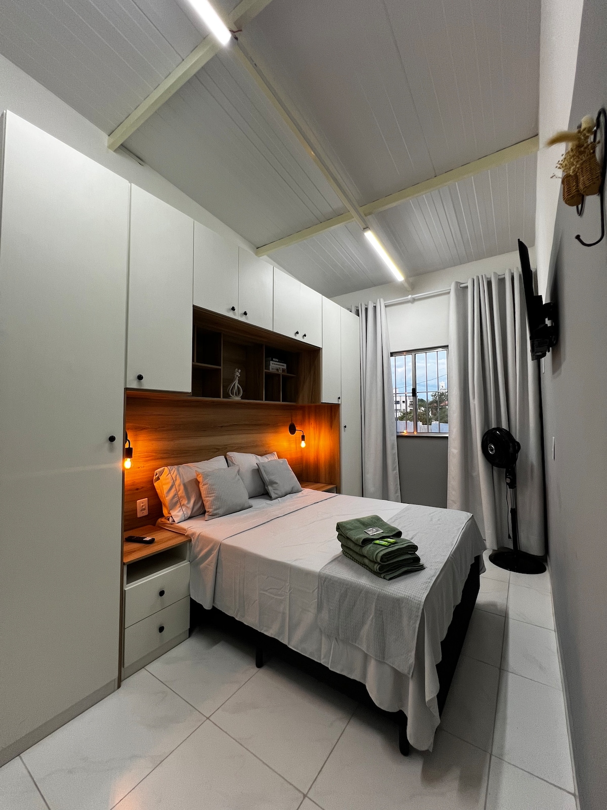 Desfrute de uma estadia inesquecível em nosso moderno e aconchegante apto, localizado em São Lourenço – uma das cidades mais encantadoras do sul de Minas! Próximo ao Parque das Águas (650 metros), restaurantes, cafés e comércios. O espaço conta com: ✨ Varanda com vista para relaxar e apreciar a paisagem ✨ Cama Queen super confortável com roupas de cama e toalhas à disposição ✨ Cozinha completa, equipada com utensílios. ✨ Ar-condicionado e Wi-Fi de alta velocidade, além de Netflix.