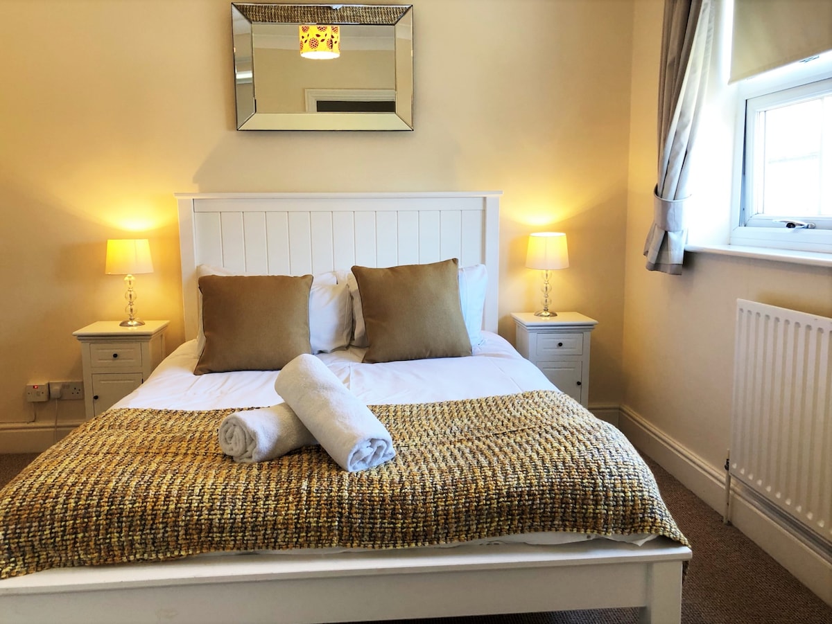 Erdgeschosswohnung mit eigenem Eingang, in der Nähe von Ascot, Windsor, Legoland und ideal für die Erkundung von Berkshire. Kurzer Spaziergang zum Bahnhof Bracknell, zu Geschäften, Restaurants und zum Einkaufszentrum Lexicon. Heller, offener Raum mit Kingsize-Bett, voll ausgestatteter Küche und modernem Badezimmer. Kostenlose Parkplätze, schnelles WLAN, TV mit Streaming-Diensten, komfortabler Arbeitsplatz und eigenständiger Check-in. Perfekt für Geschäftsreisen, Wochenendaufenthalte oder den Besuch lokaler Sehenswürdigkeiten.