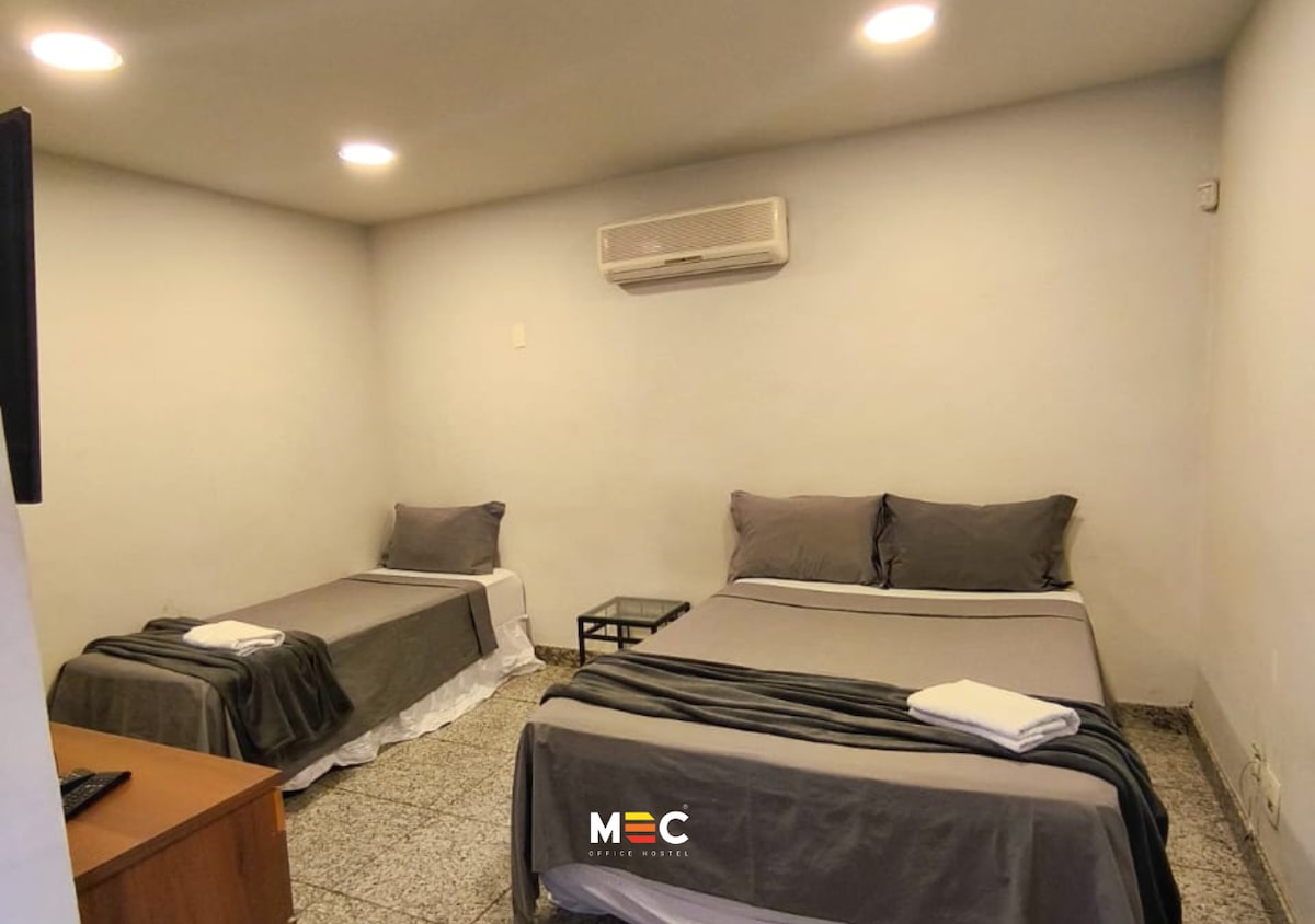 Cama em quarto compartilhado misto para 15 pessoas. O quarto conta com fechadura eletrônica, armário individual, ventilador e ar condicionado (De 22h às 08h). O banheiro é privativo, dentro do quarto. Está incluída a roupa de cama e internet wi-fi. Também está disponível uma cozinha compartilhada para uso dos hóspedes. Diária acrescida de 3% em taxa de serviço , a ser paga no momento do checkin.