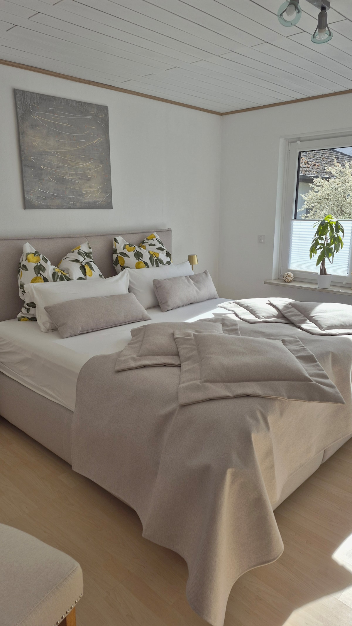 Die ehemalige Gesindekammer des ursprünglichen Bauernhofes wurde von uns liebevoll zu einer geräumigen Dachgeschoßwohnung ausgebaut. Die bis in den Giebel ausgebaute Wohnung strahlt einen ganz besonderen Charme aus. In der 75qm-Wohnung gibt es ein Schlafzimmer mit Doppelbett und Babybett und einen großen Wohnraum mit offener, voll ausgestatteter Küche. Das moderne Badezimmer hat eine ebenerdige Dusche mit Wandheizung.