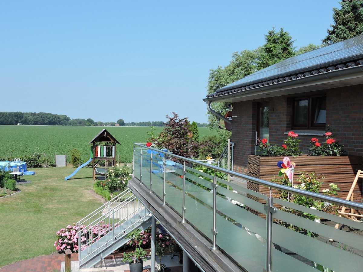 Du möchtest entspannen, Ruhe und herrliche Ausblicke auf Wiesen und Felder genießen, dann wirst du hier nicht zu kurz kommen. Die modern eingerichtete Wohnung verfügt über einen großzügigen Wohn-/Essbereich, ein Schlafzimmer mit Doppelbett und einem großzügigen Bad. Die Gartenhaus-Sauna und Fahrräder sind gegen eine geringe Gebühr benutzbar. Die reizvolle Stadt Oldenburg (15 km entfernt) bietet viel Kultur inklusive Schloss und Theater und ist ebenso beliebt für seine Shopping Angebote.