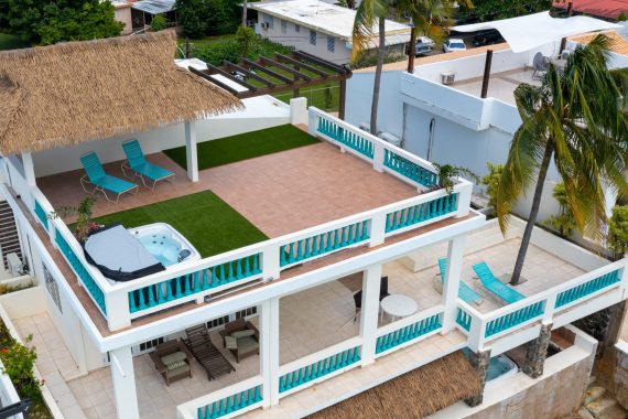 This exclusive complex in Rincon, is a 2,800 sq. ft, three story fully furnished and equipped Mediterranean style villa with air conditioning, comfortable kitchen, dining, living room terrace first and Third floor. This beachfront villa has direct beach access is a stones throw from beautiful Antonio's beach. One of the closest units to the beach area
